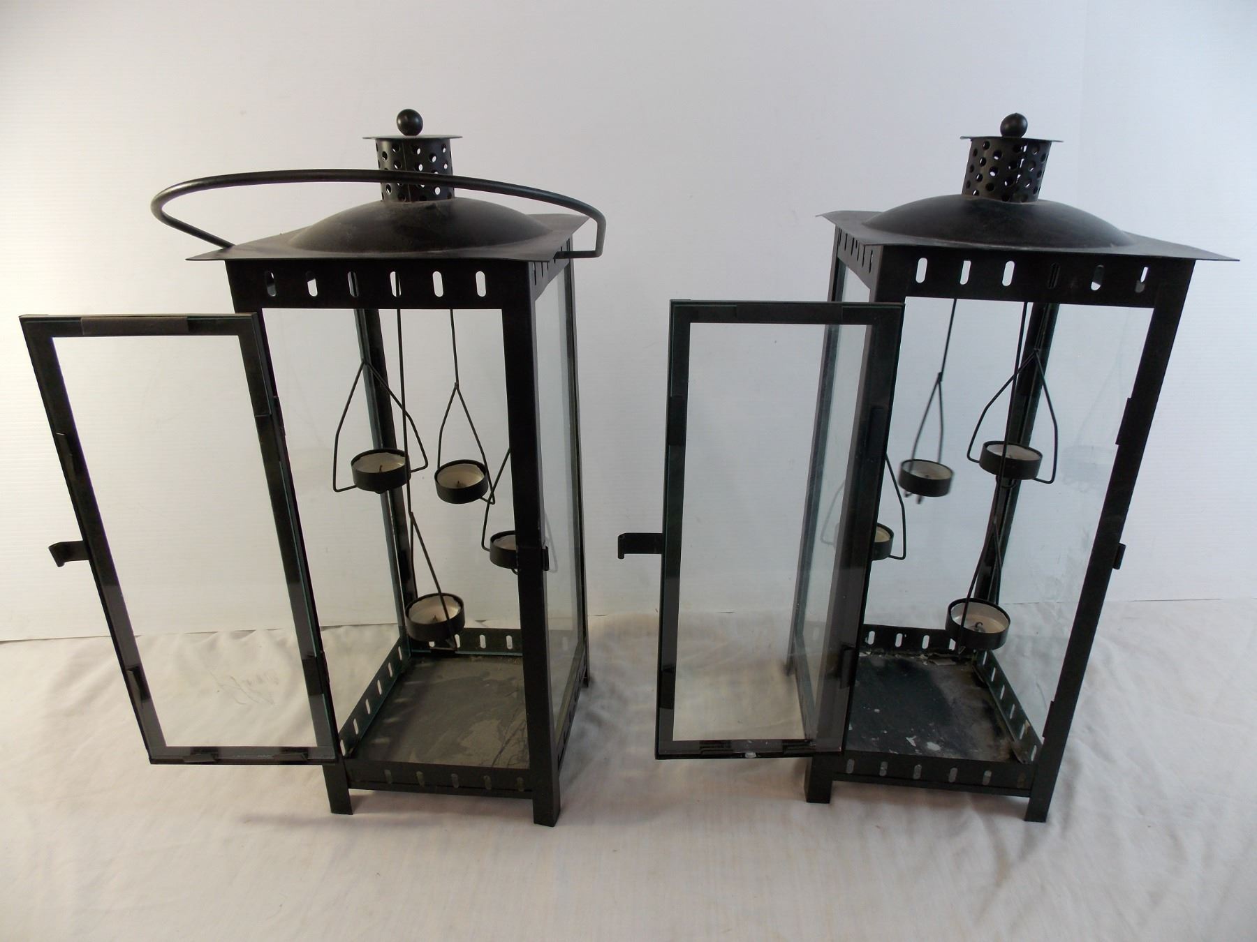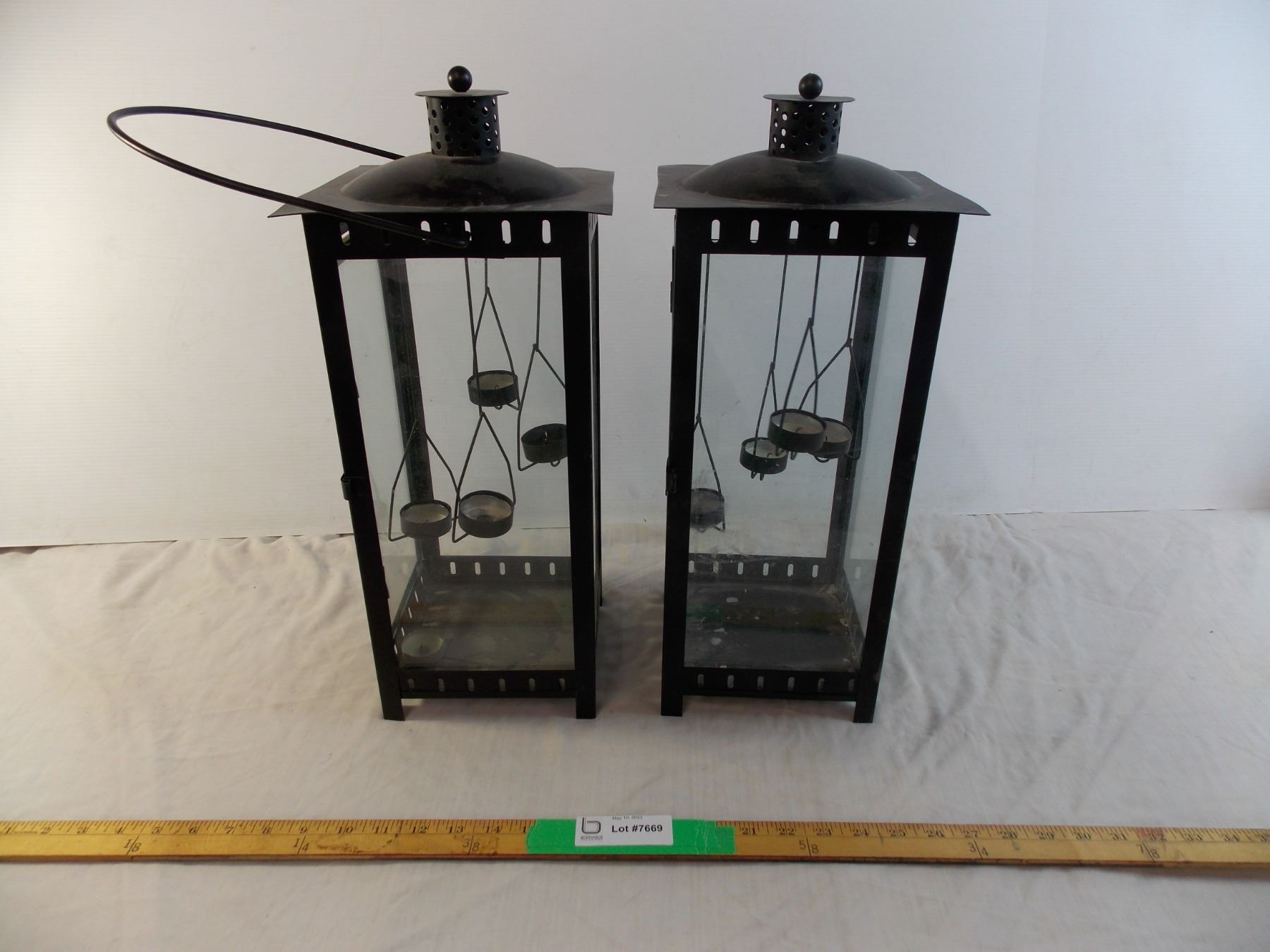 (2) Hanging metal - tea-light candle holders - 19" tall