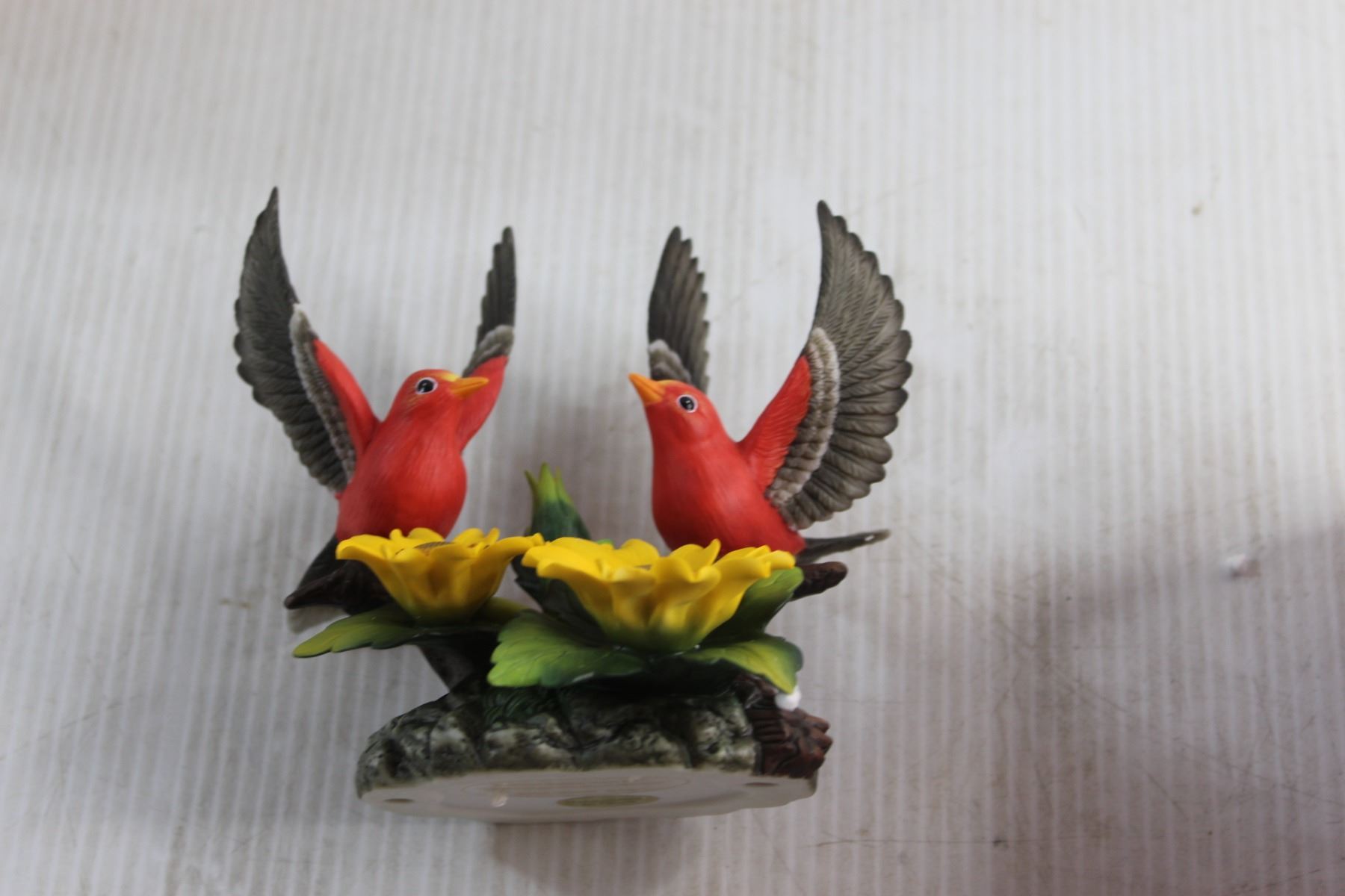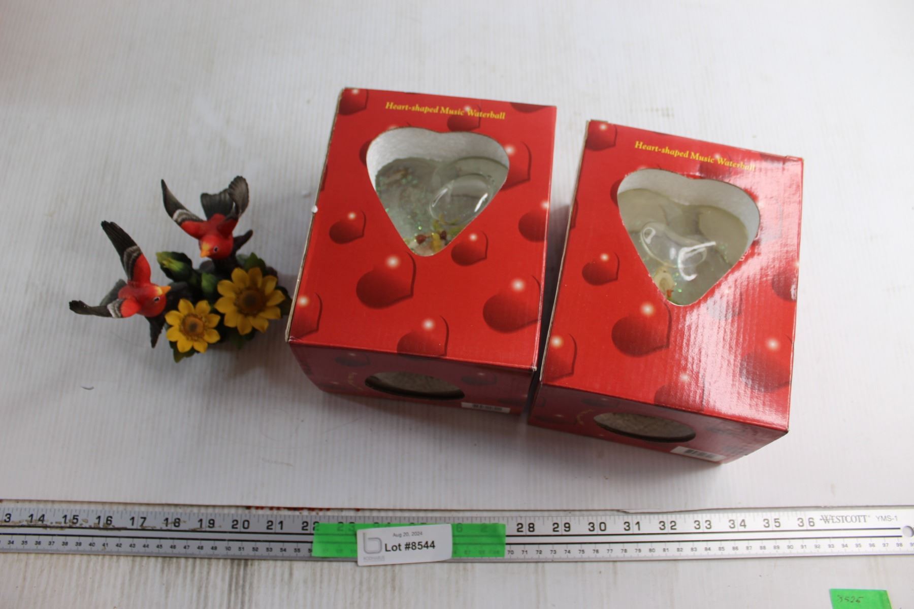(2) Heart Shaped Music Waterballs and Birds Ceramic Decoration