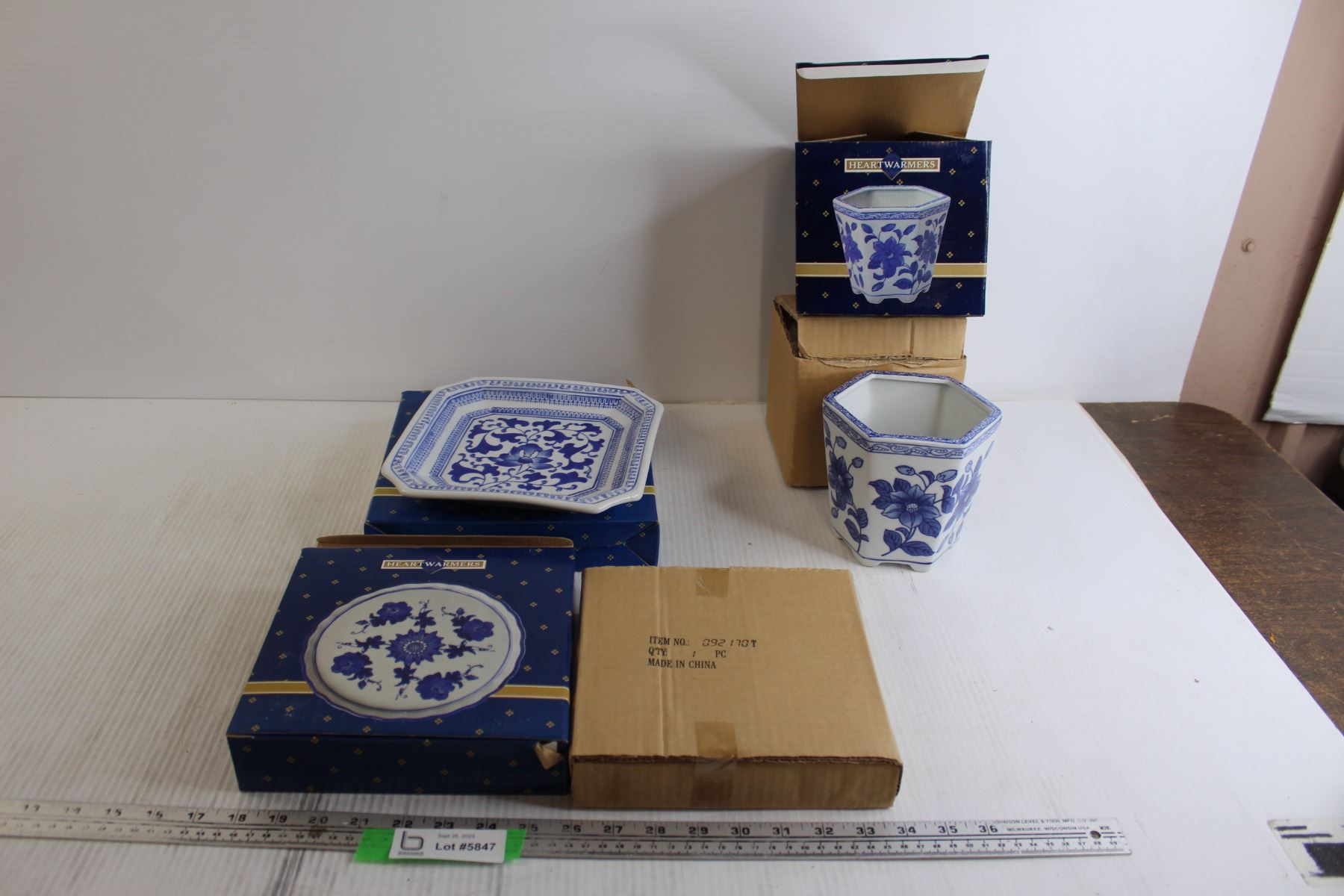 (2) Heartwarmers Blue and White Plates - (1) is Sealed, Heartwarmers Blue and White Planter - All Smell Like Smoke