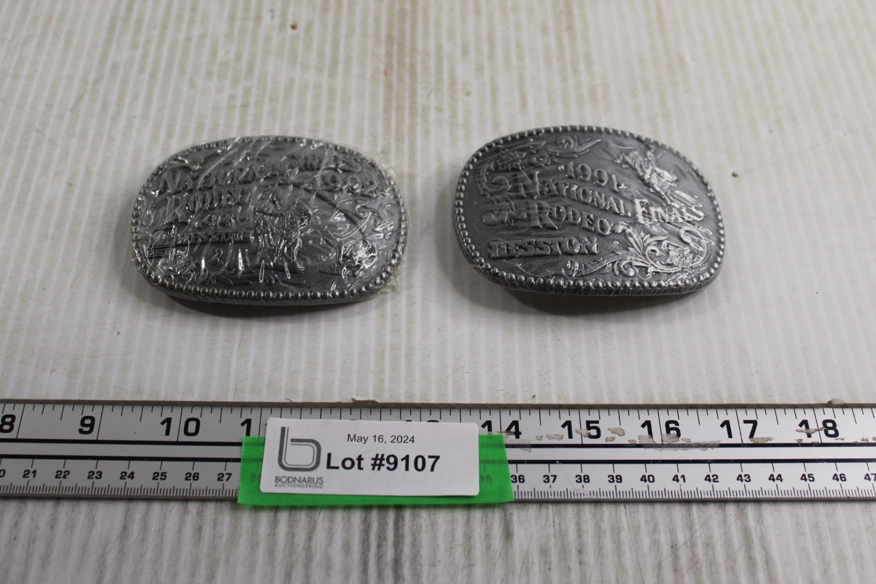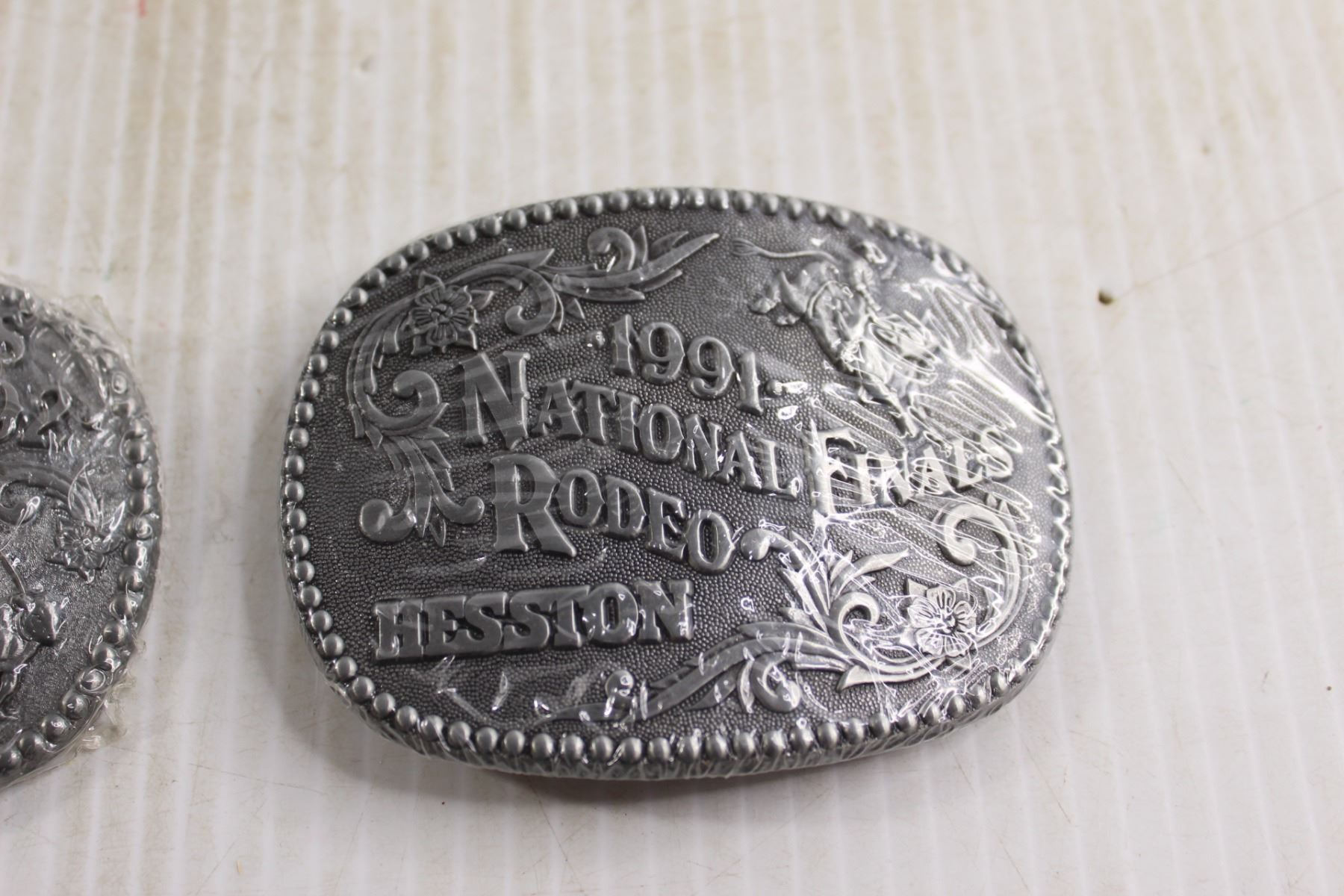 (2) Hesston National Finals Rodeo Belt Buckles - 1991, 1992, Sealed