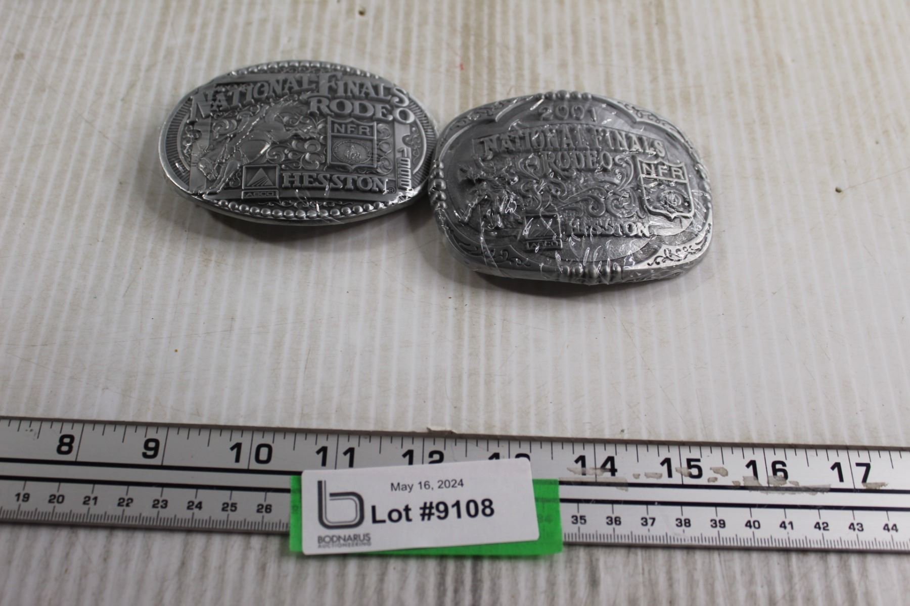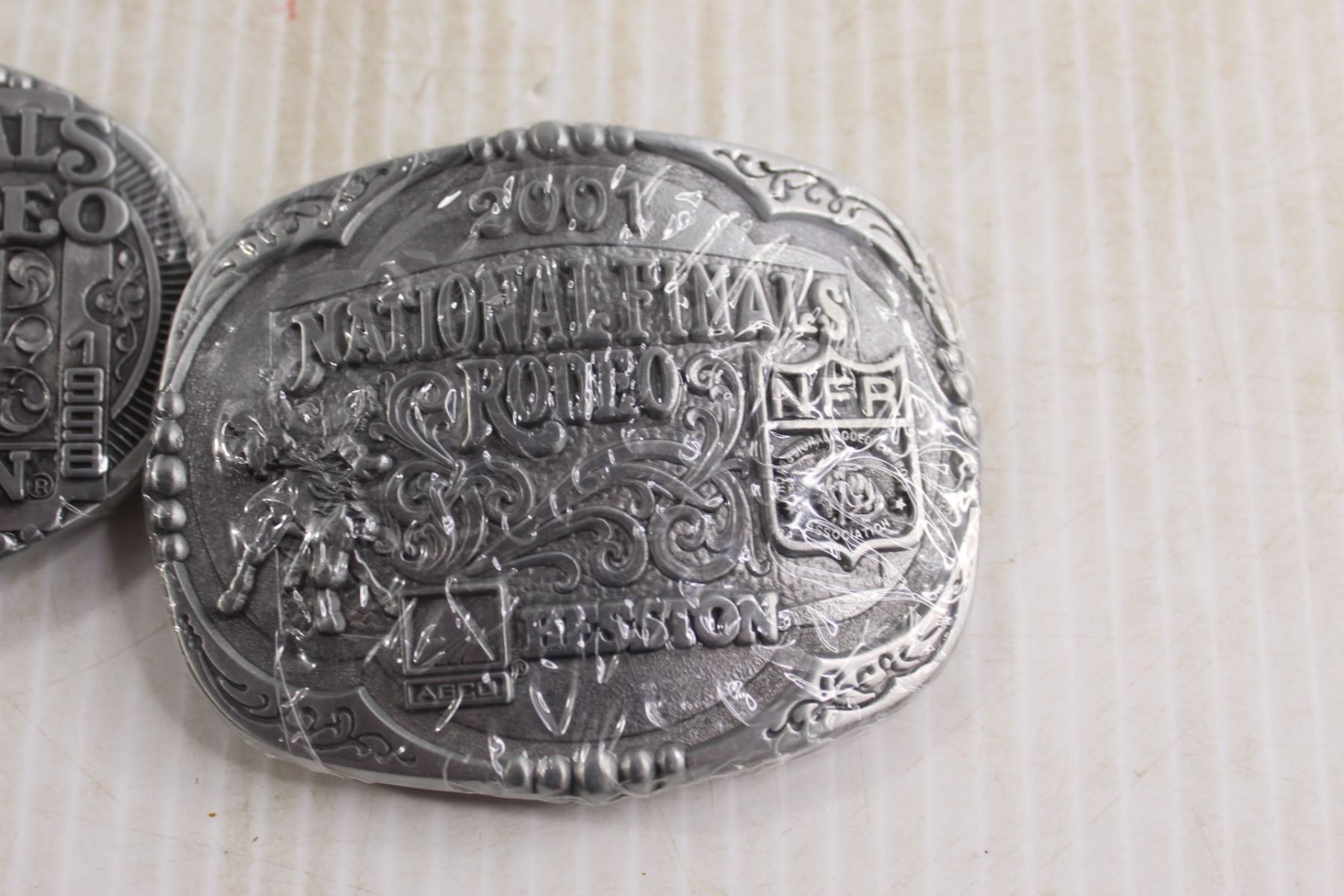 (2) Hesston National Finals Rodeo Belt Buckles - 1998, 2001, Sealed