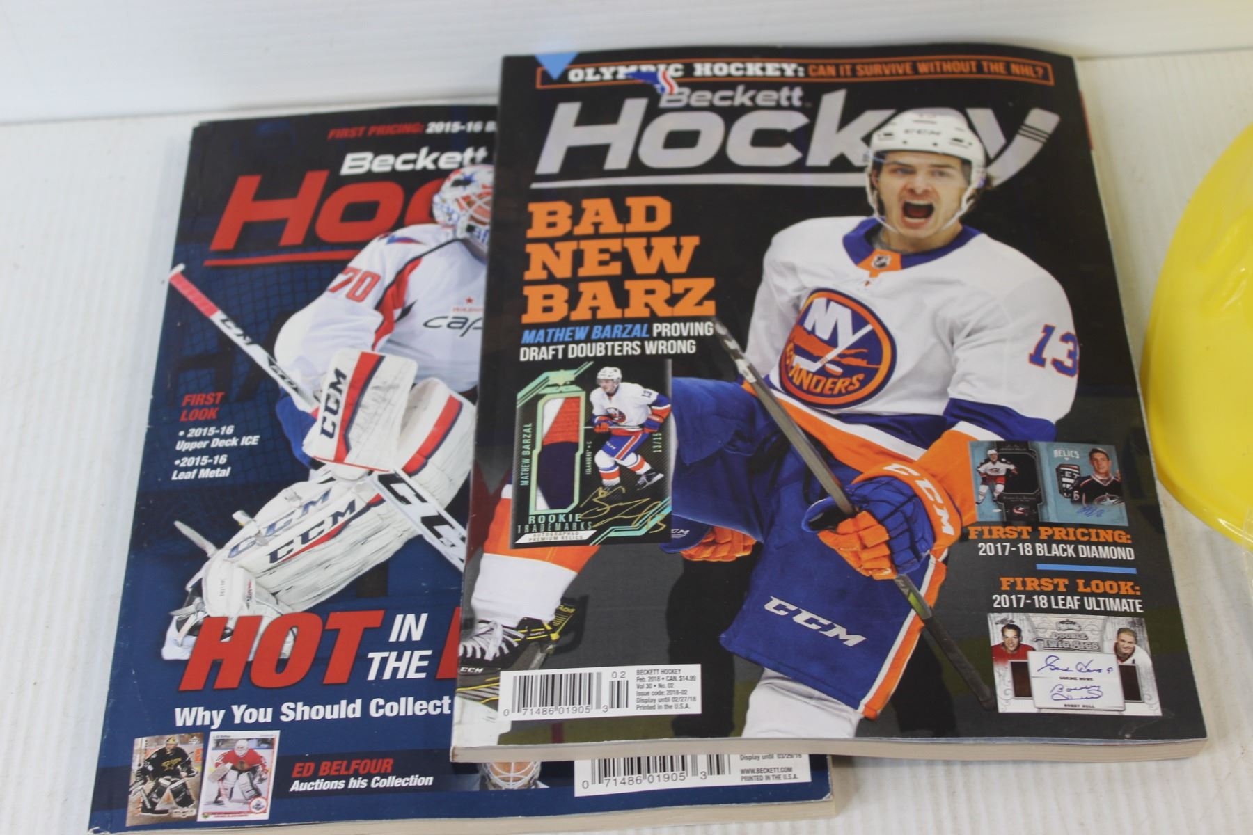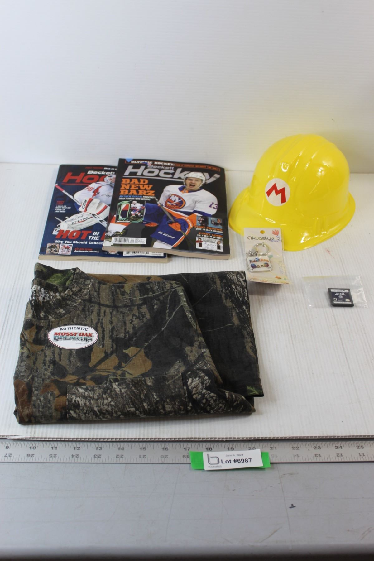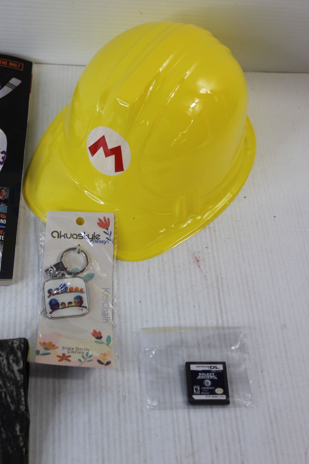 (2) Hockey Magazines, Plastic Mario Hat, Keychain, Misc.
