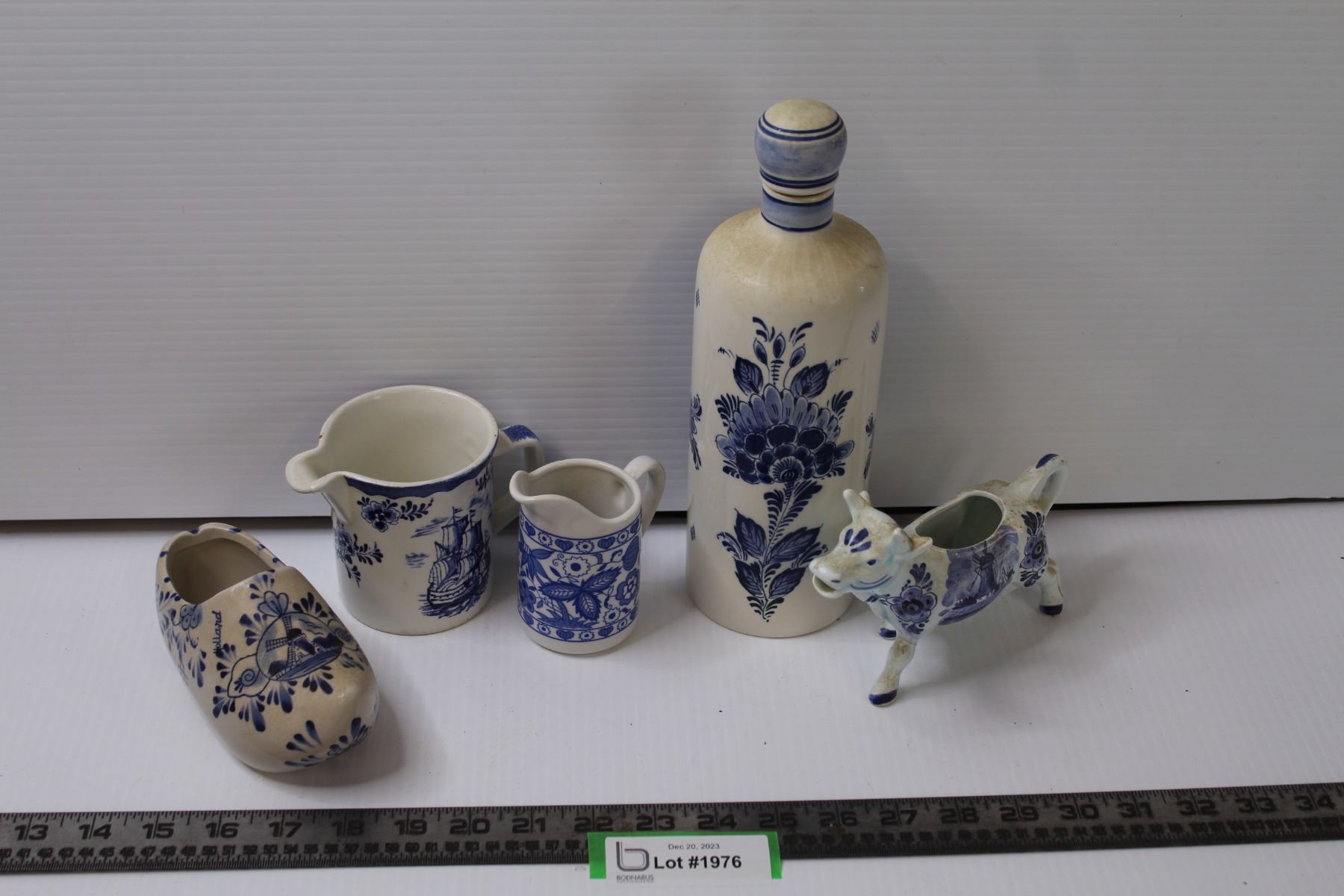 (2) Holland Theme Creamers, Holland Shoe, Cow Creamer, Cream Bottle
