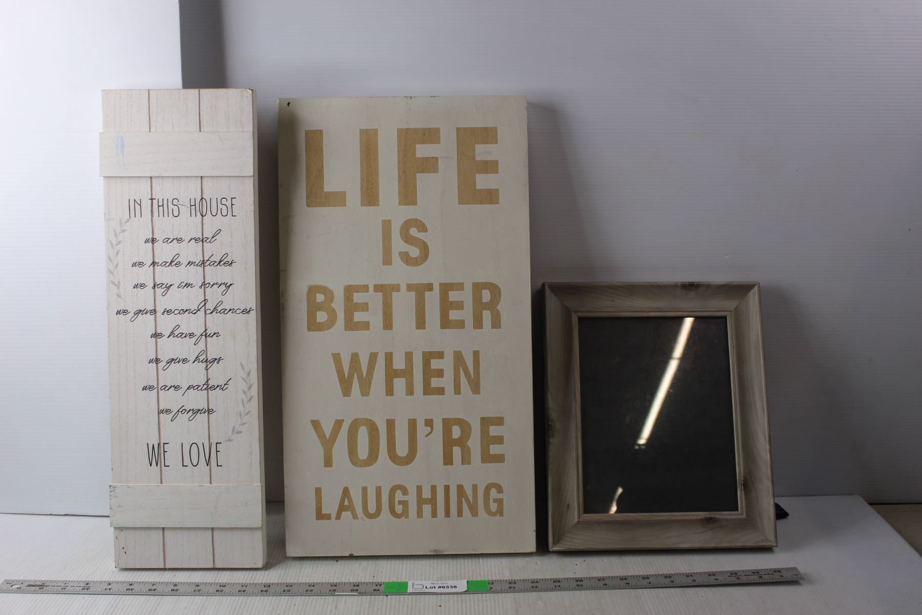(2) Home Decor Signs Up to 10" Tall & 11.25' Wide & Photo Frame- As Is