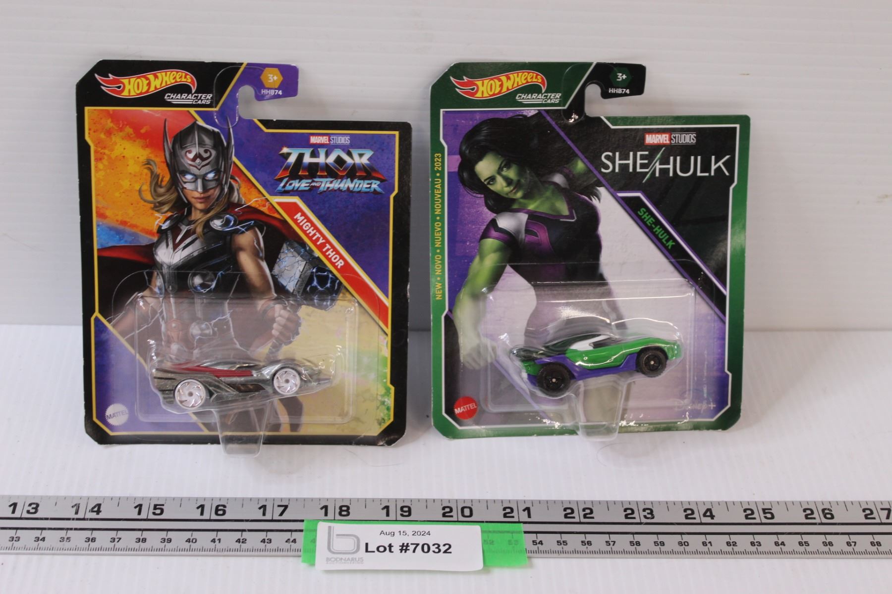 (2) Hot Wheels Die Cast Cars: Thor & She Hulk - NIB
