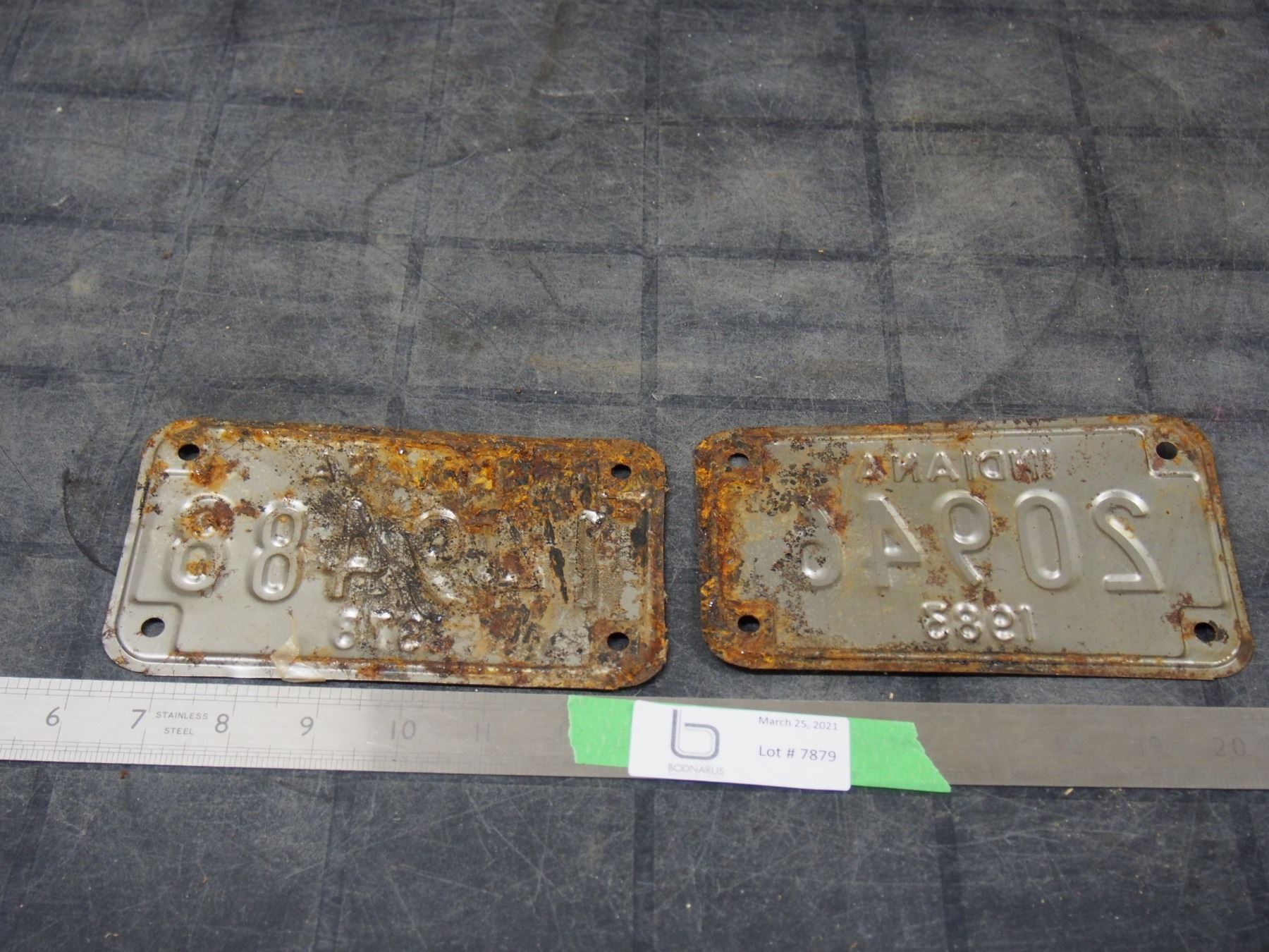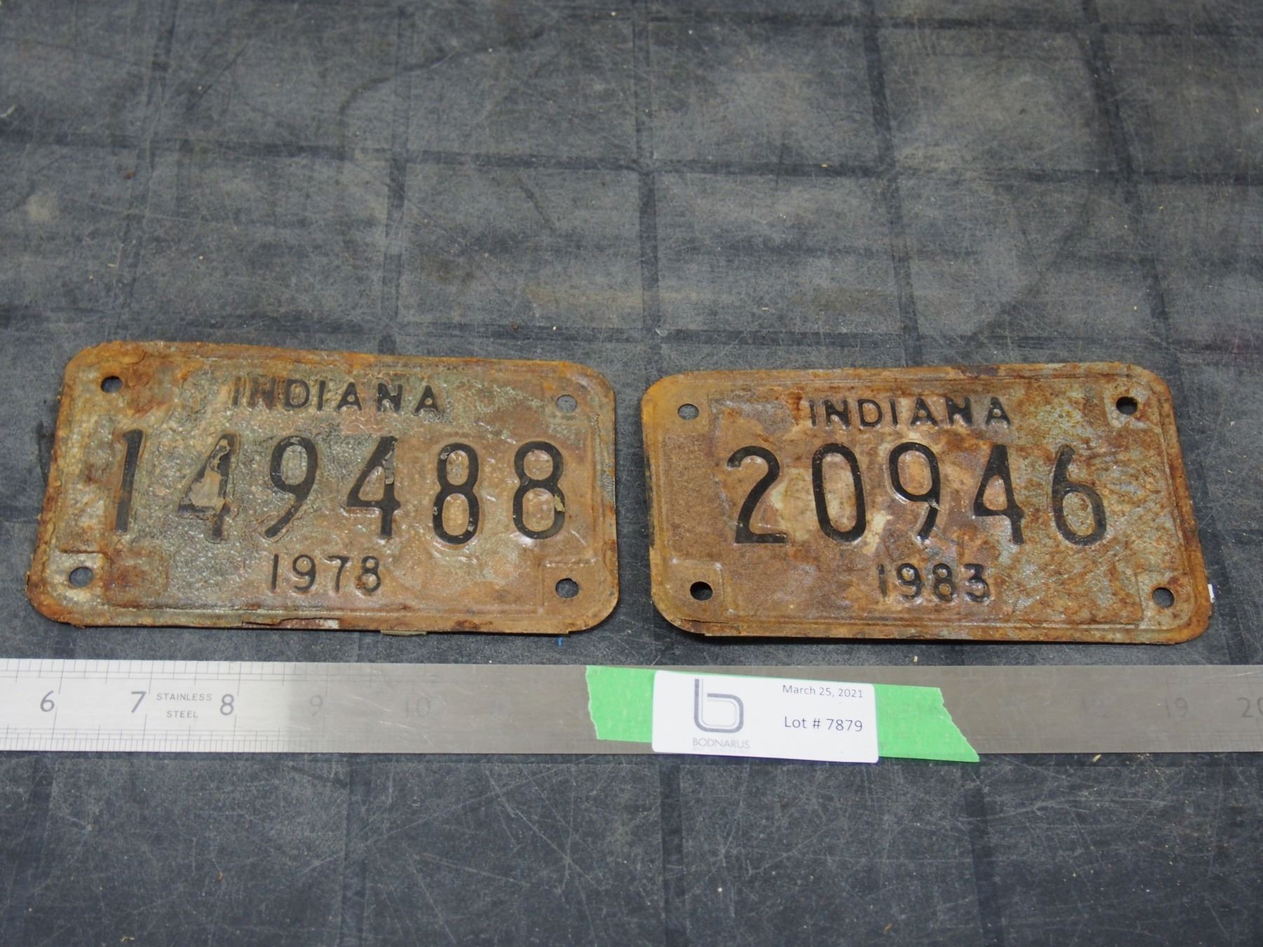 (2) INDIANA MOTORCYCLE LICENSE PLATES 1978, 1983