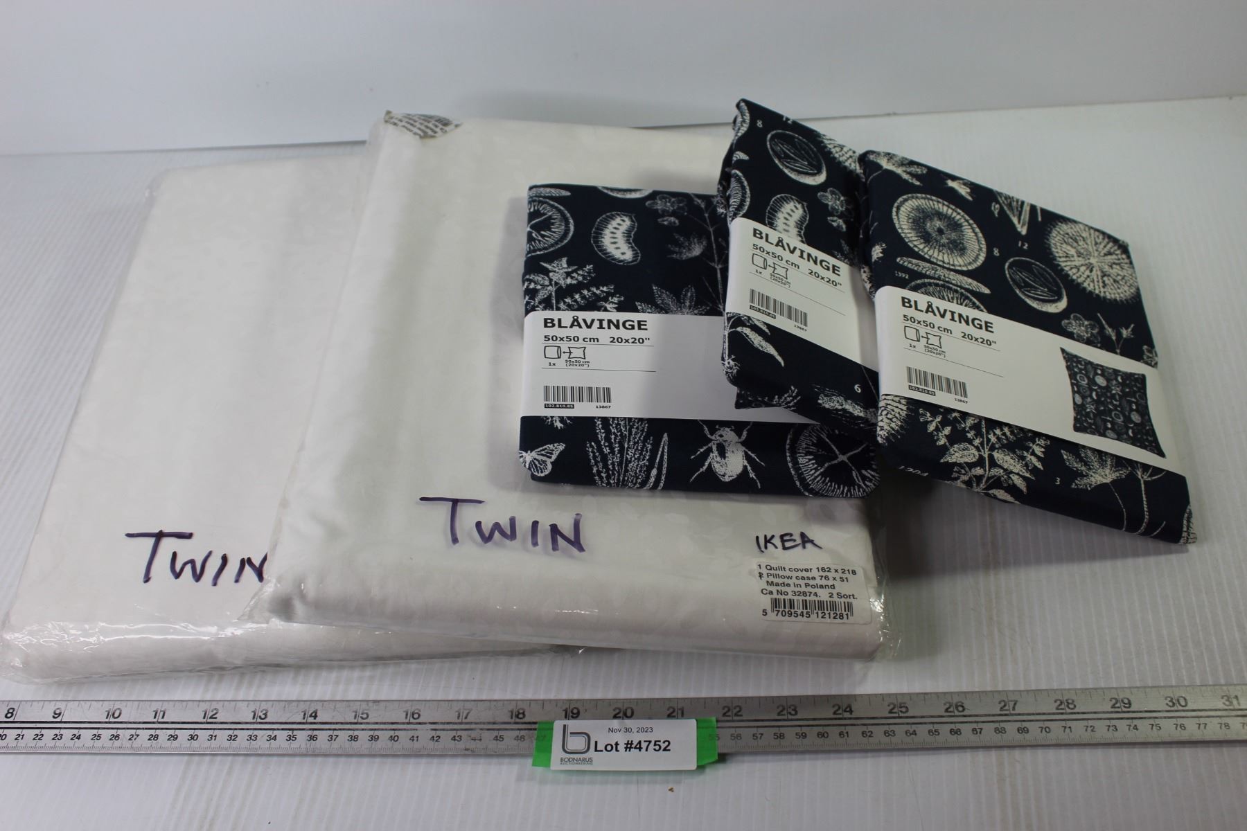 (2) Ikea Twin Size Quilt Covers & Pillow Case - (3) Pillow Cases (20" x 20")