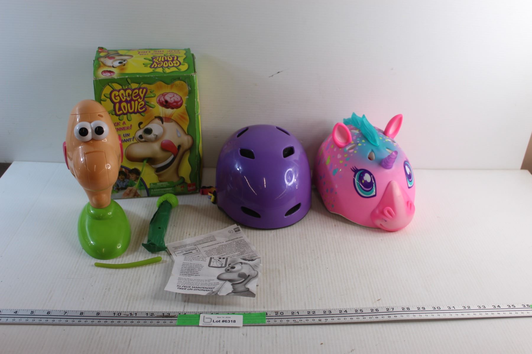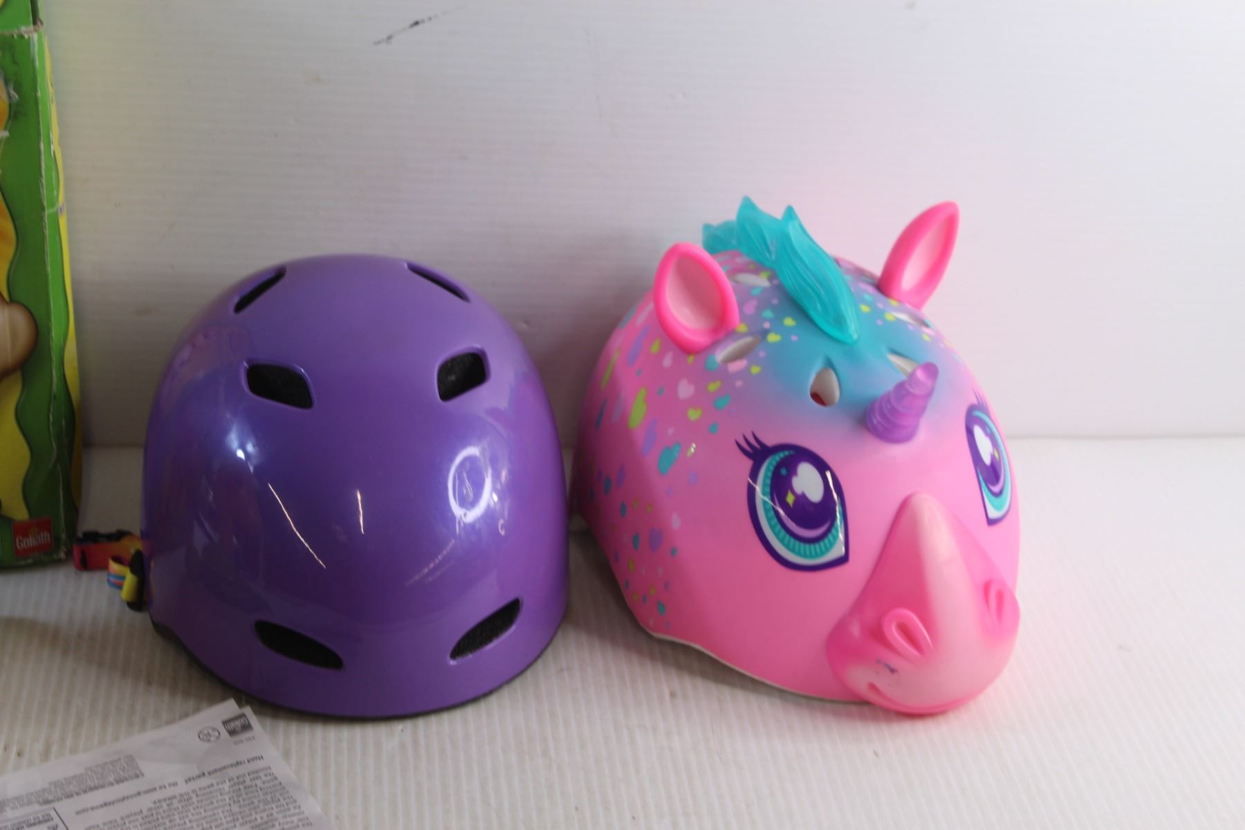 (2) Kids Bike Helmets and Gooey Louie Toy