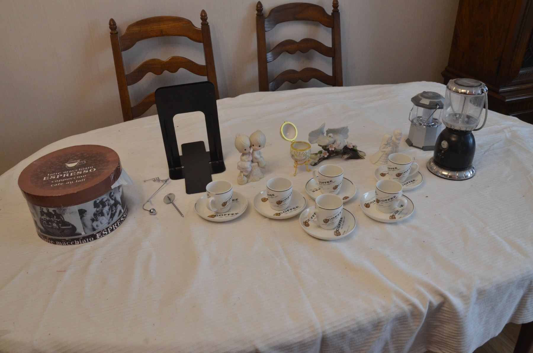 2 Lanterns, 6 Cups & Saucers, Figurines