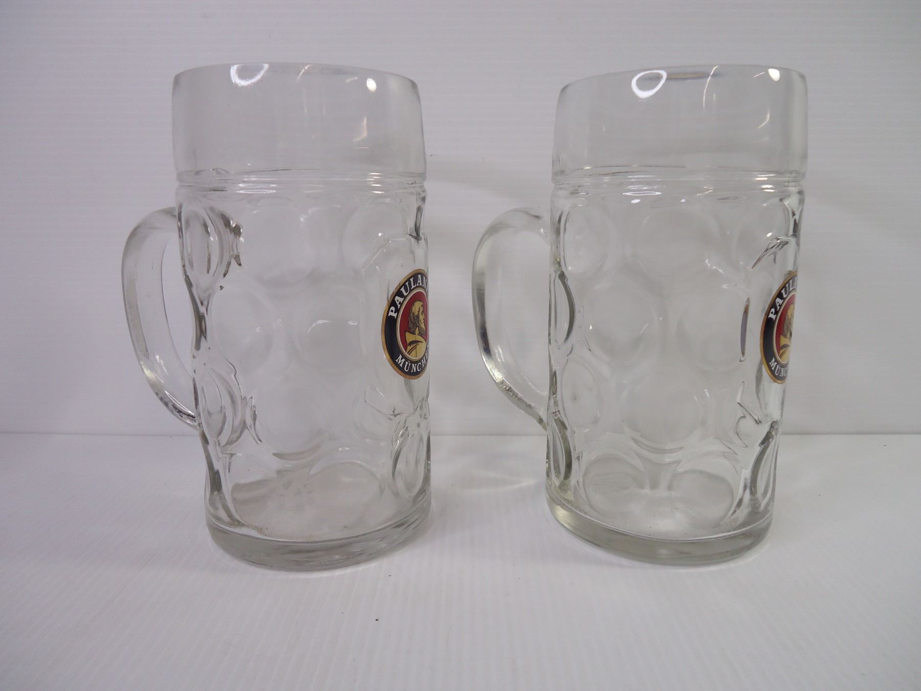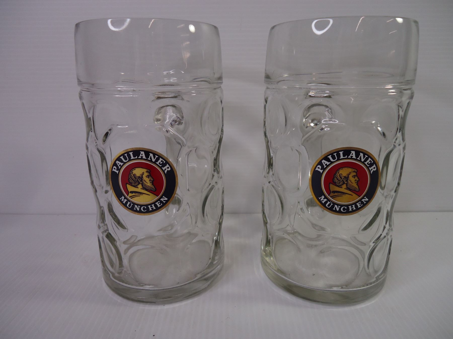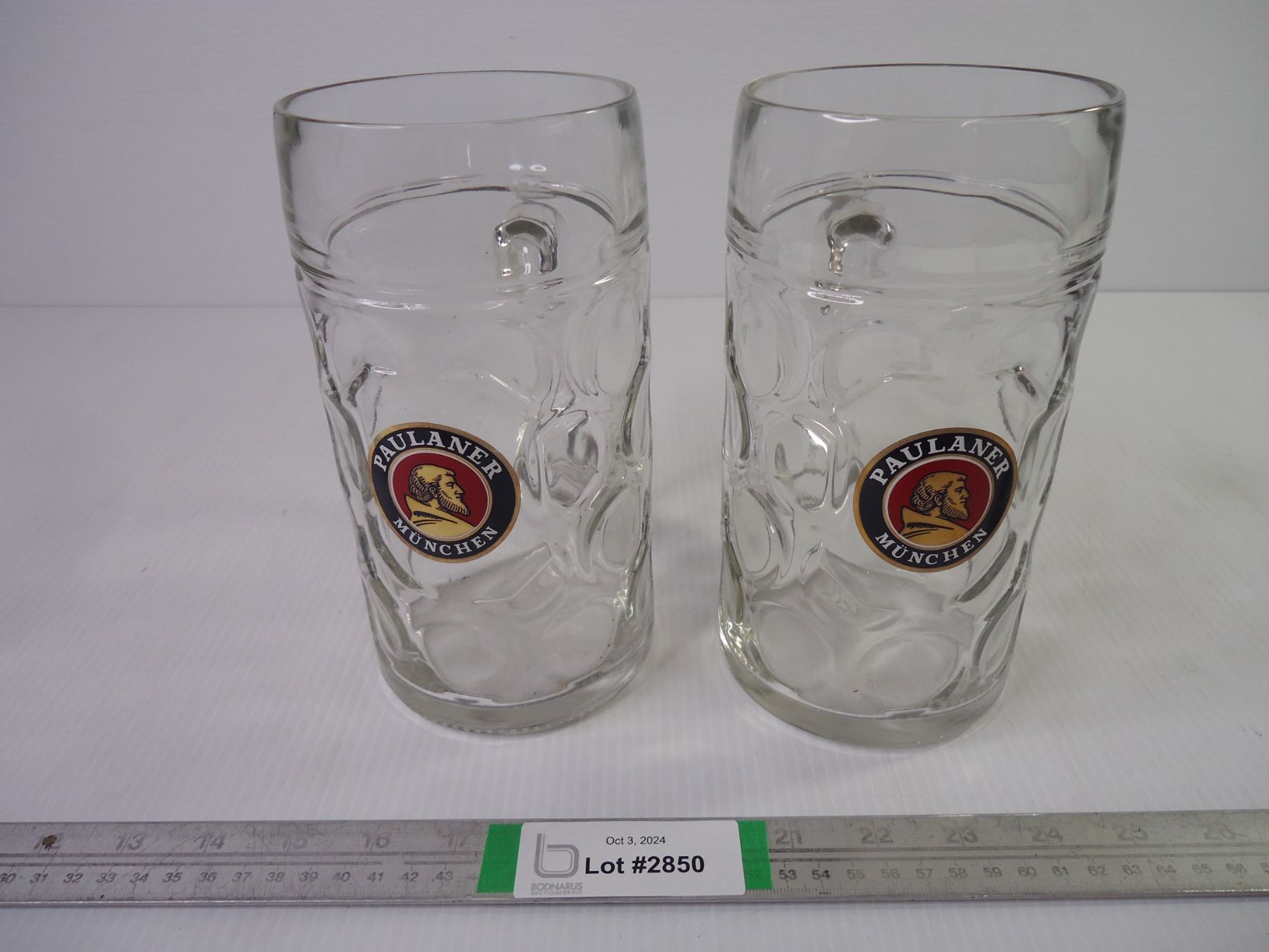 (2) Large One Litre Beer Mugs "Paulaner Munchen" -Paulaner Brewery, Munich Germany