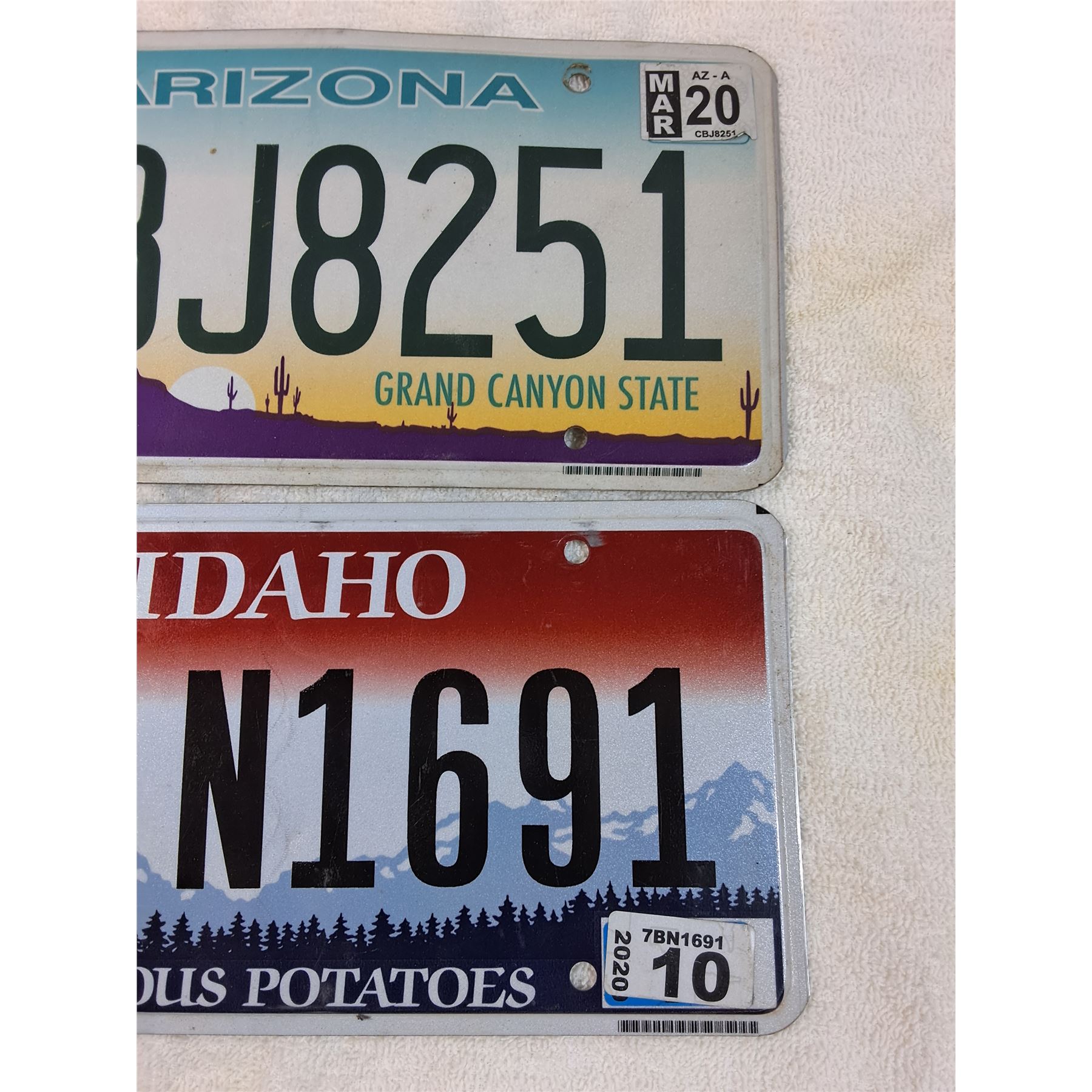 (2) License Plates: Arizona, Idaho