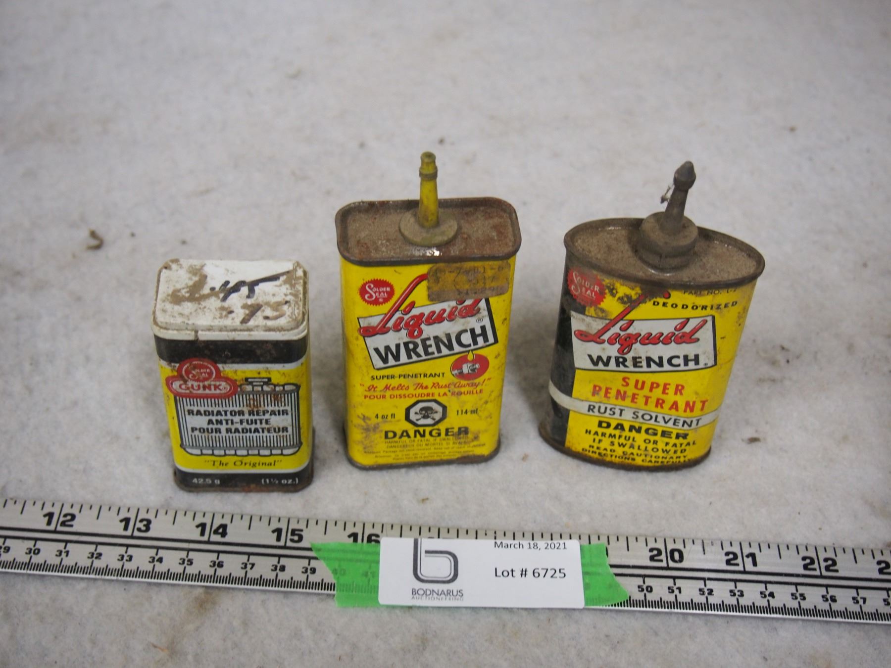 2 Liquid Wrench Tins and 1 Solder Seal Radiator Repair Metal Tins