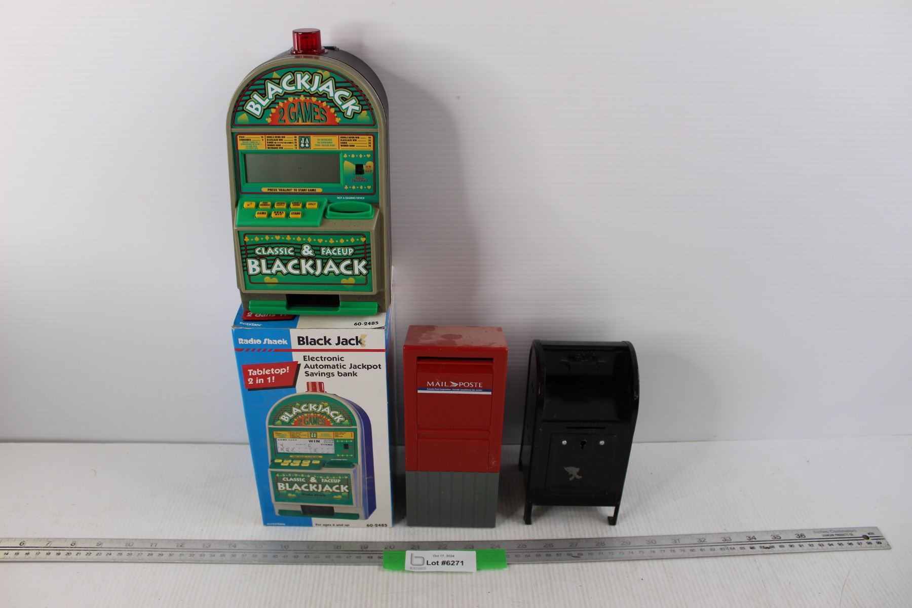 (2) Mail Box Piggy Banks, RadioShack Electronic Automatic Jackpot Savings Bank Video Poker Game w/ Box