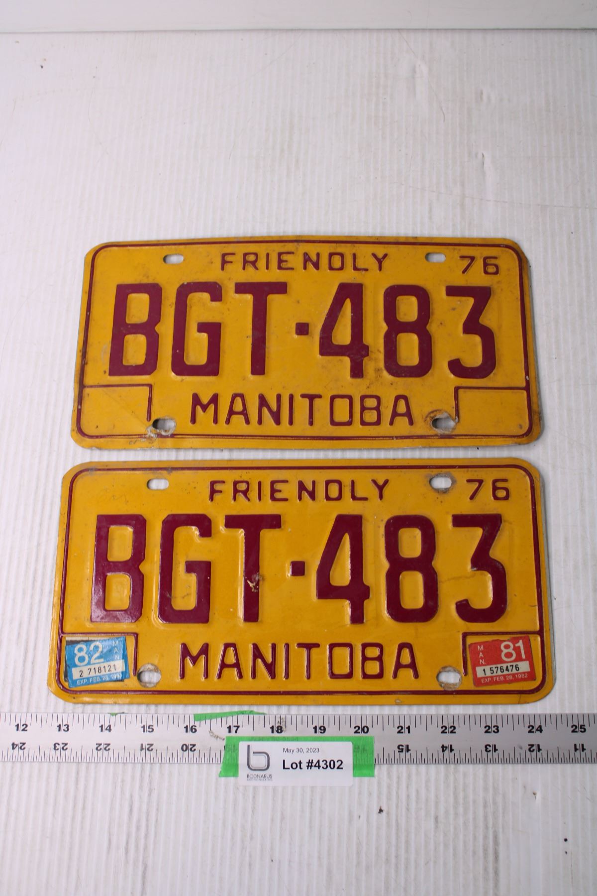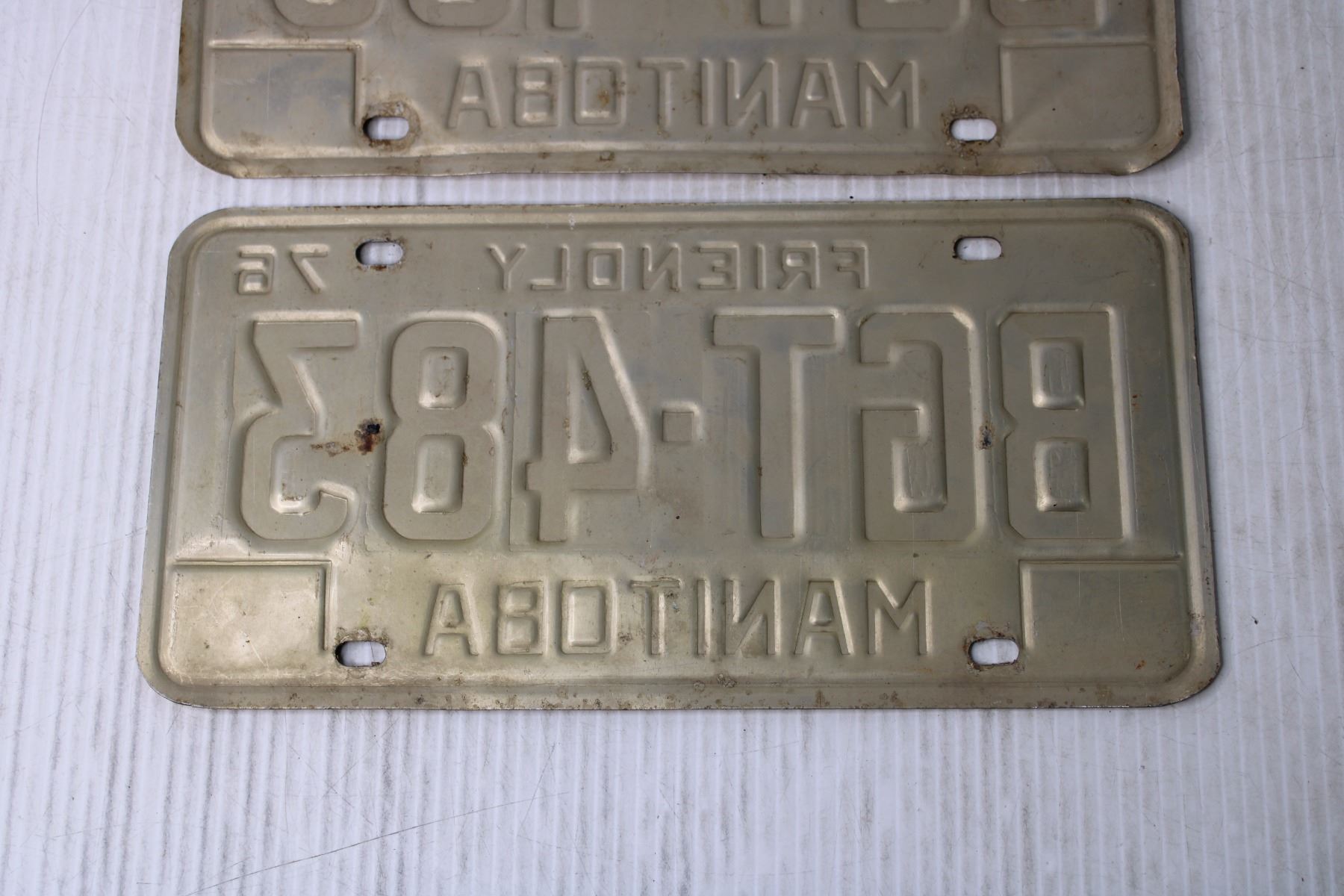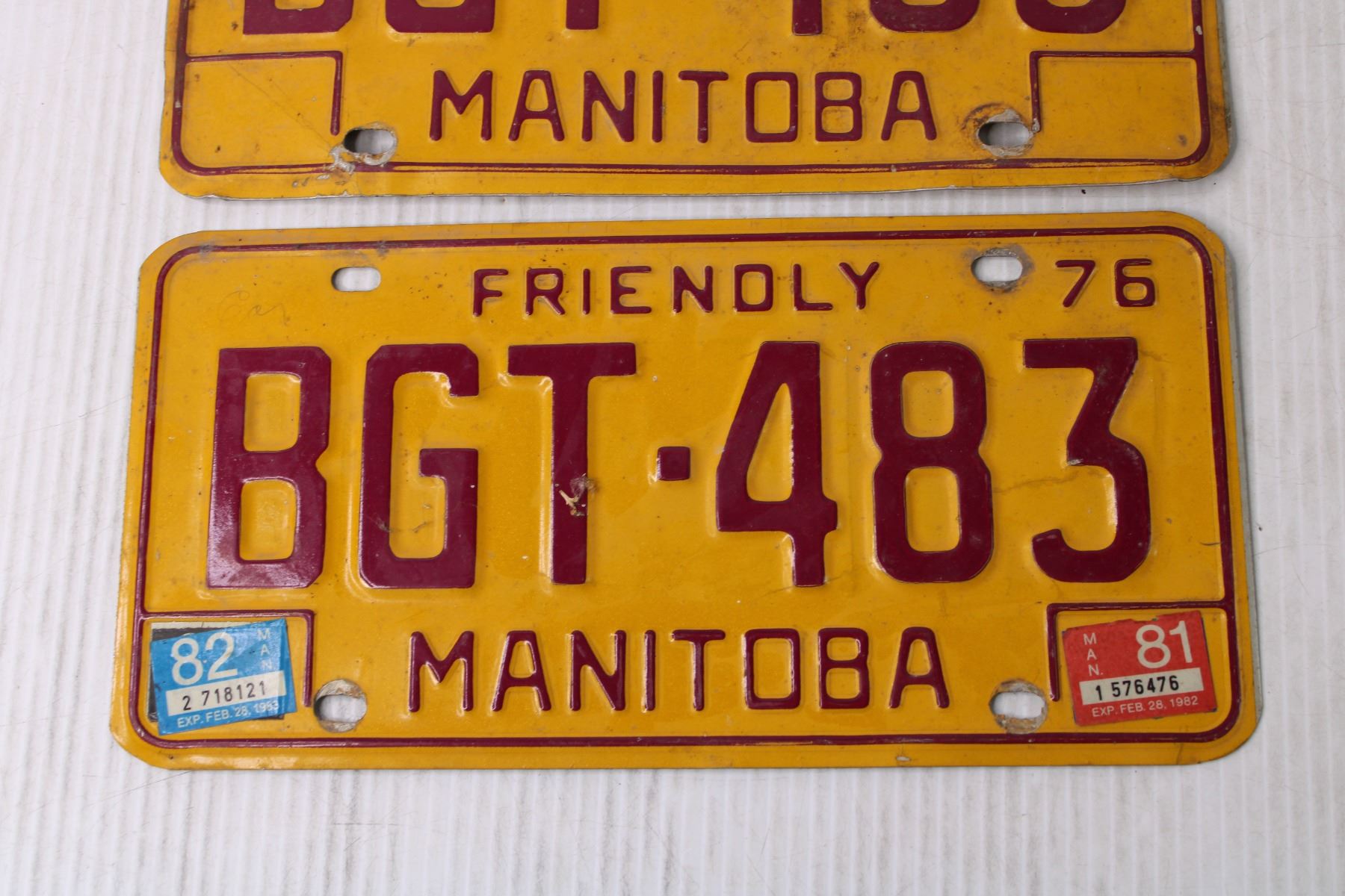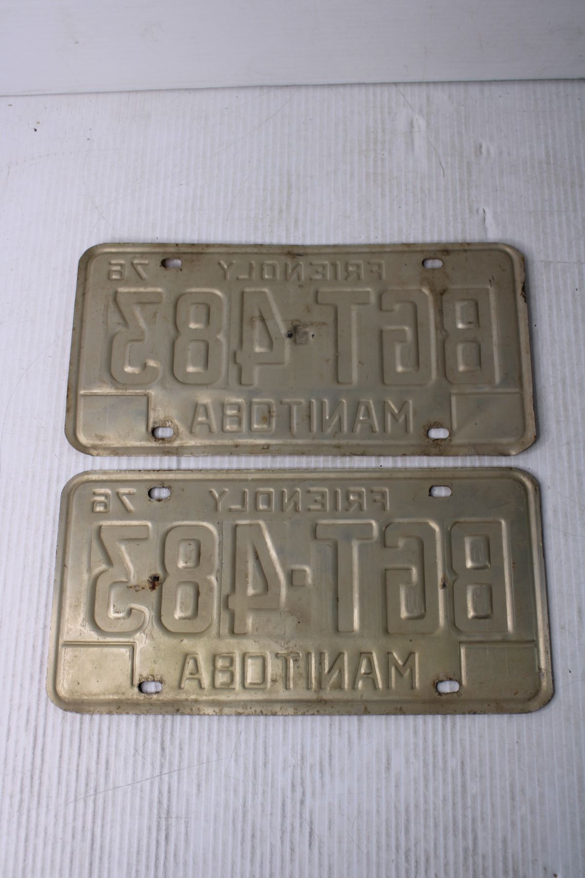 (2) Manitoba 1976 License Plates