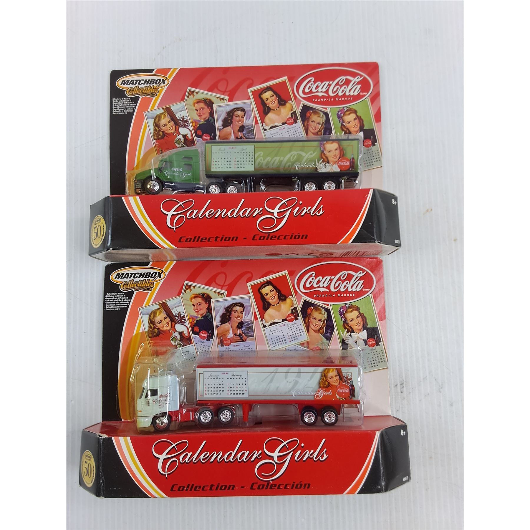 (2) Matchbox Coca-Cola  Calendar Girls  Replica Semi-Tractor Trailers - Appears Unopen