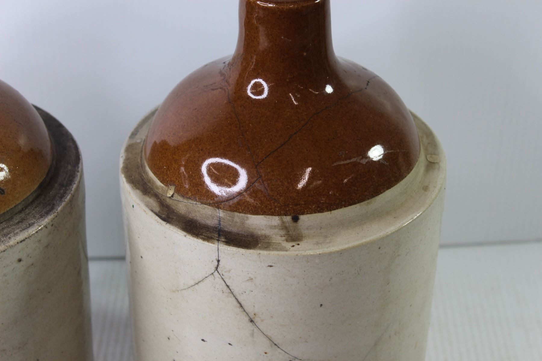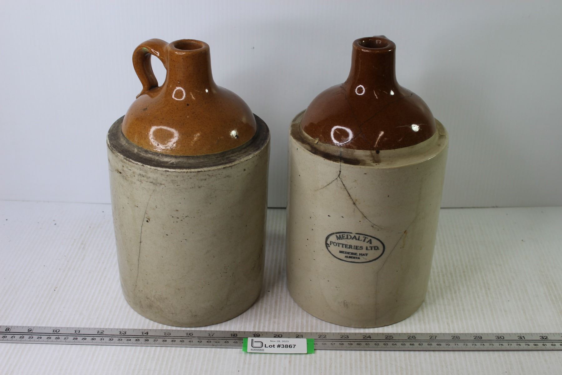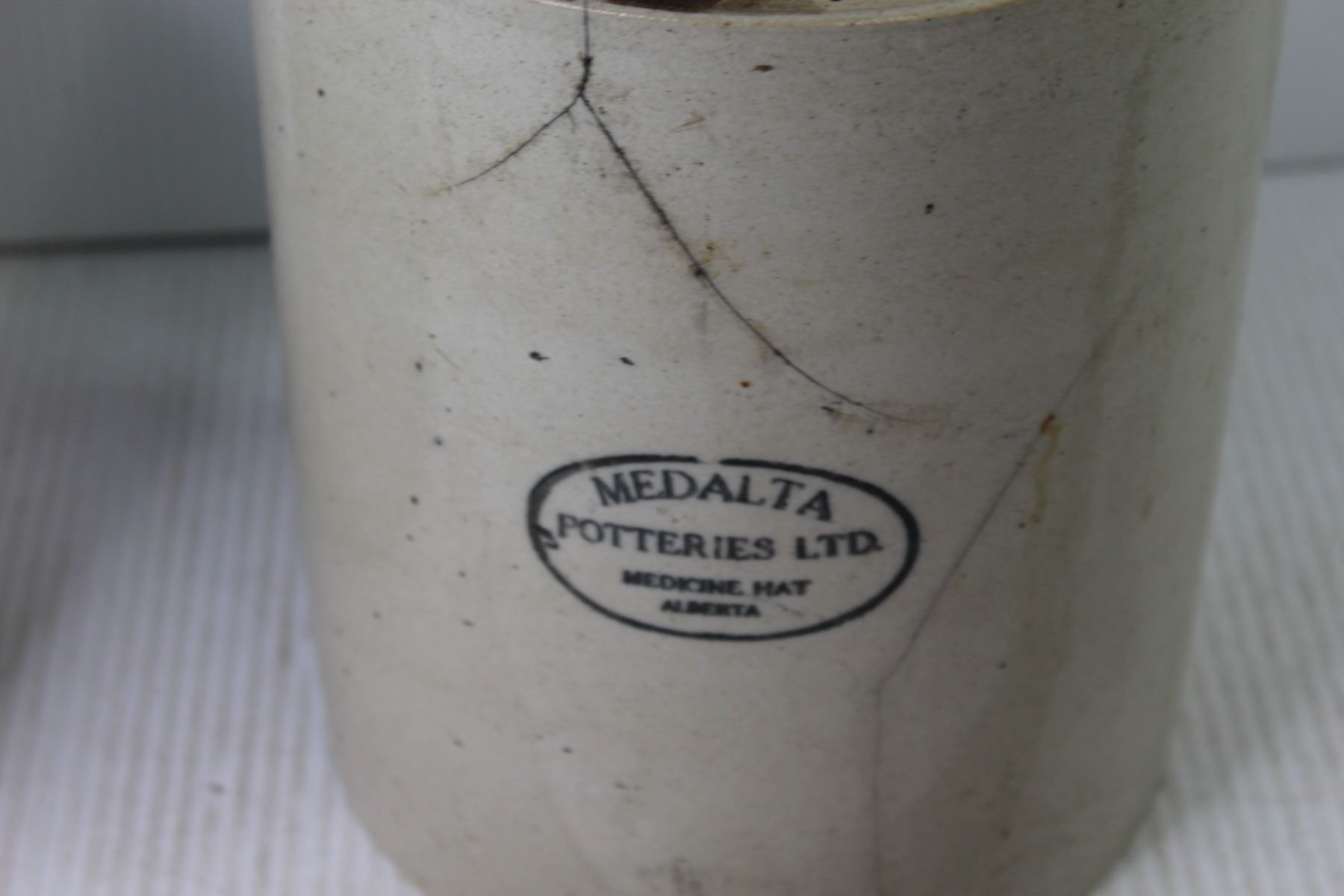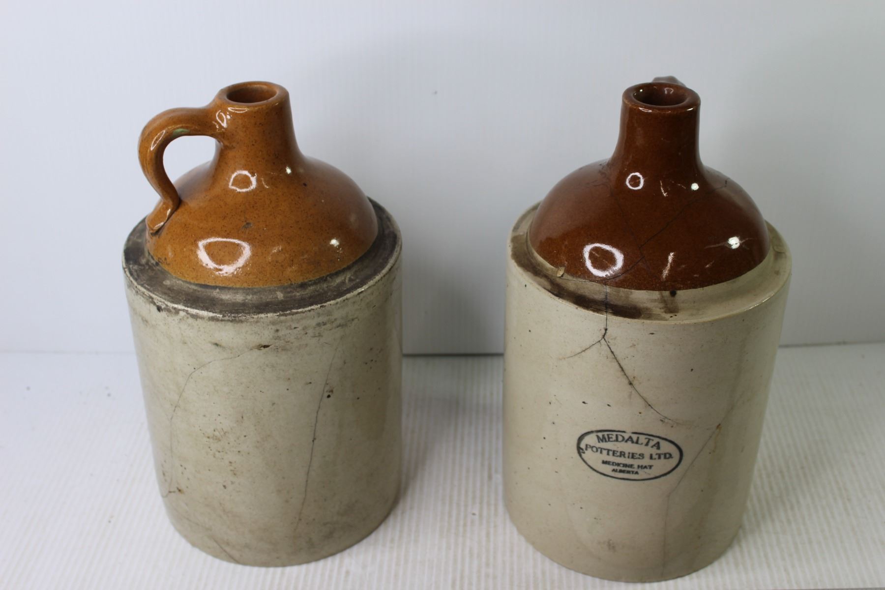 (2) Medalta Stoneware Jugs (both cracked)
