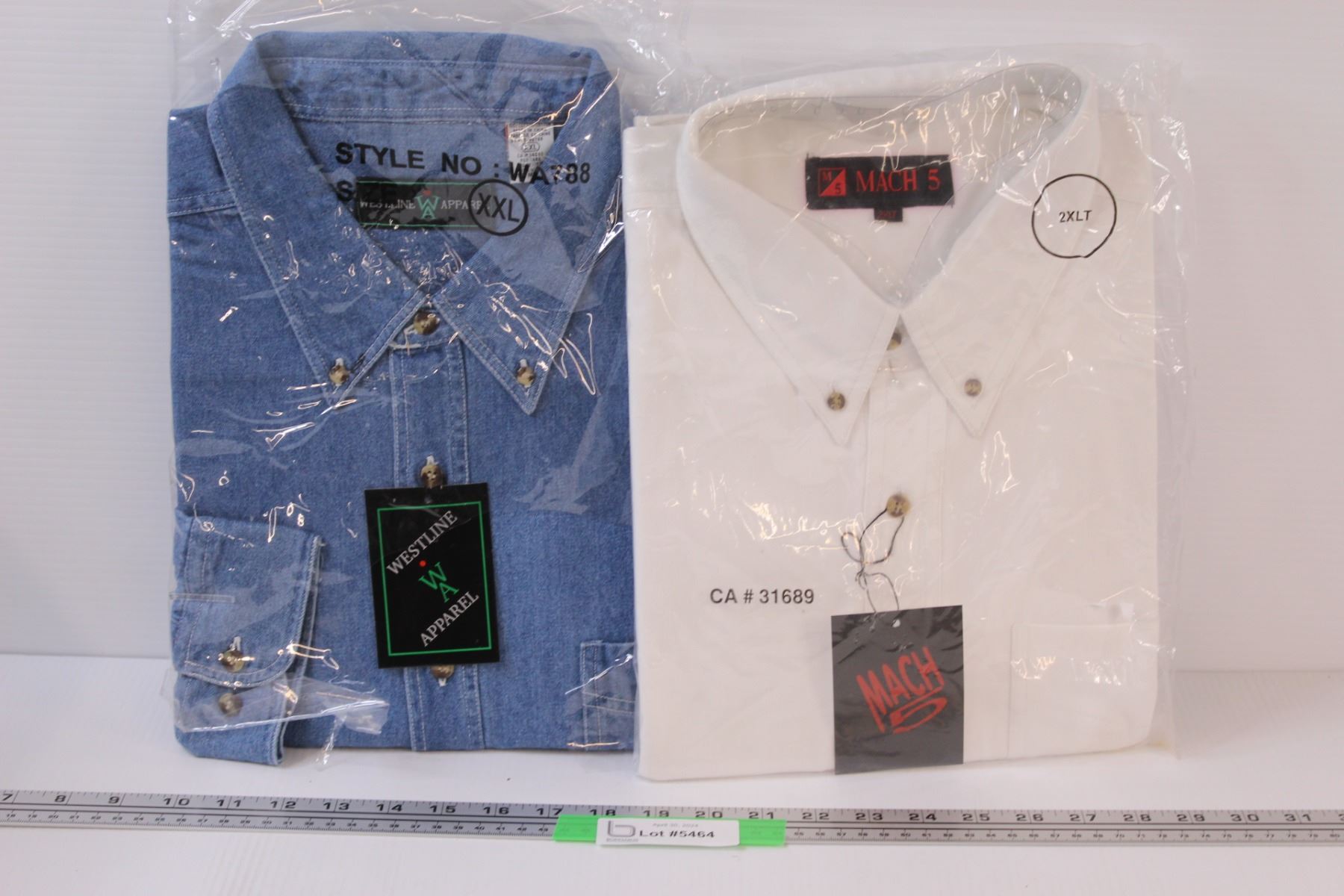 (2) Men's Button Front Shirts: MACH 5 White 2 XL & Westline Apparel Jean Style 2 XL