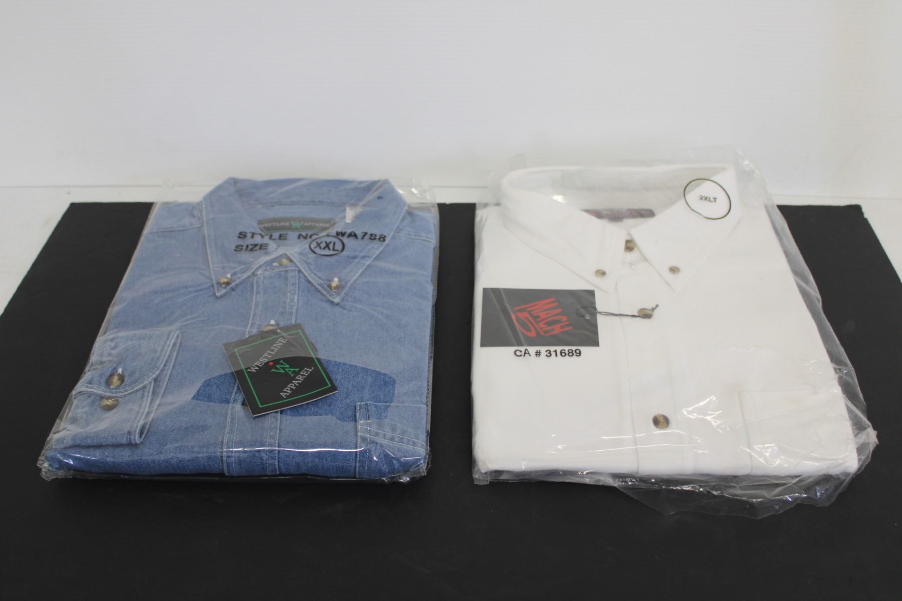 (2) Men's Button Front Shirts: MACH 5 White 2 XL & Westline Apparel Jean Style 2 XL