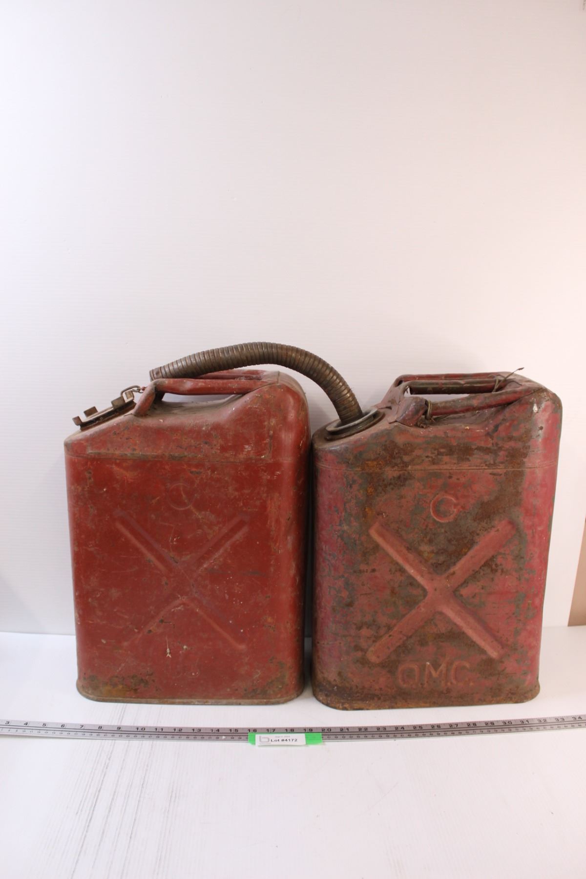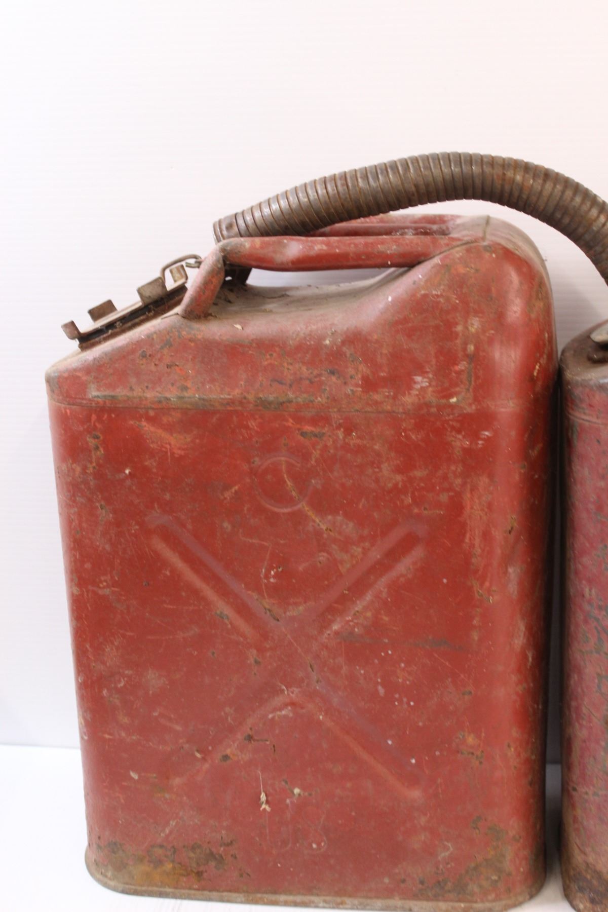 (2) Metal Gasoline Cans - 19" x 13" x 8" - Some Wear