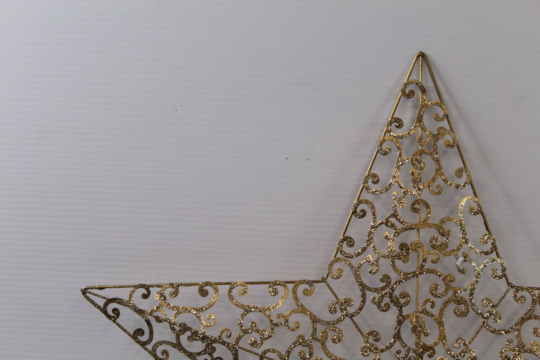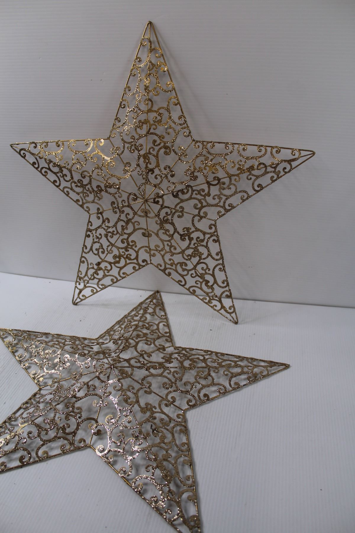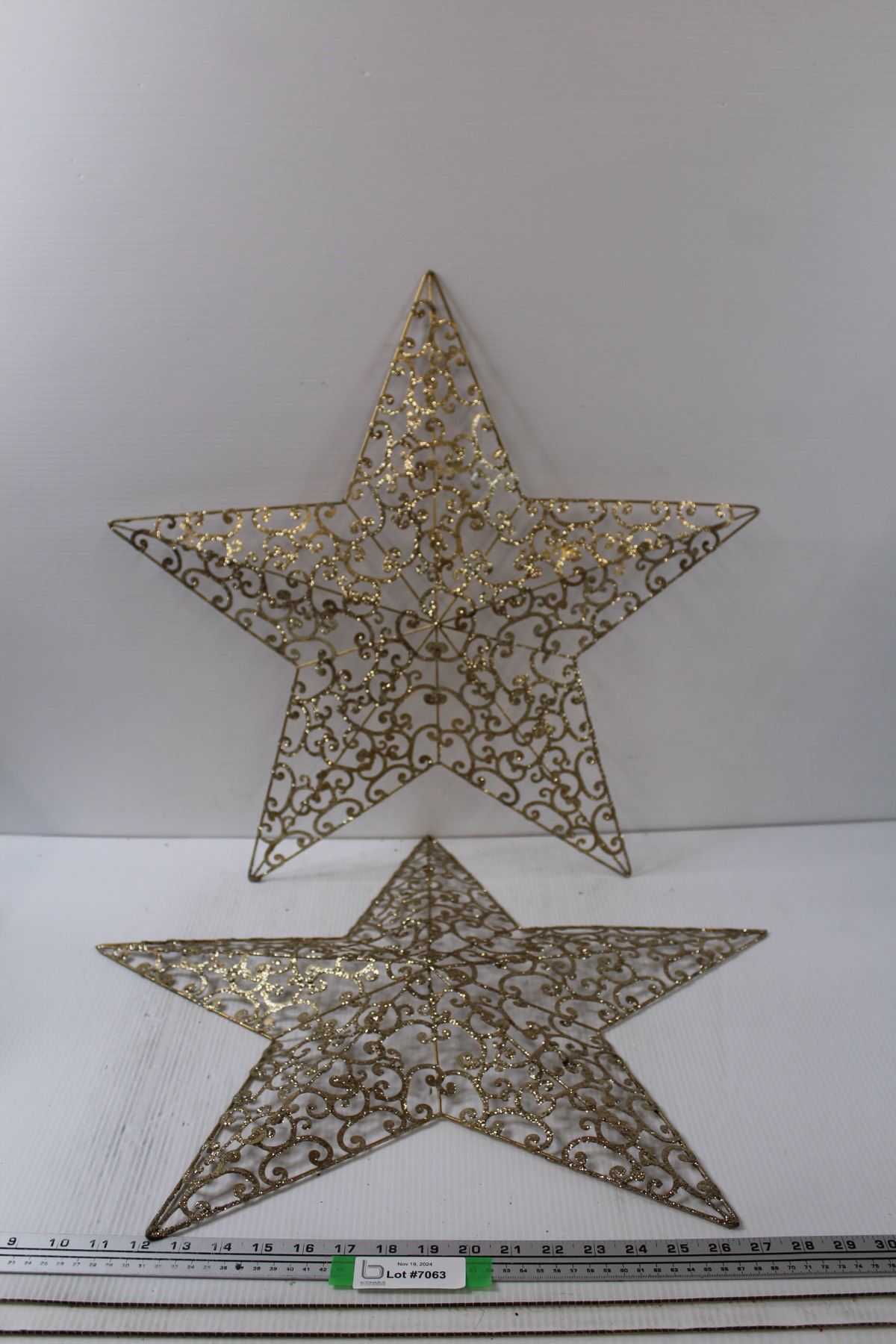 (2) Metal Glittering Gold Christmas Star Decor - 22" Diameter