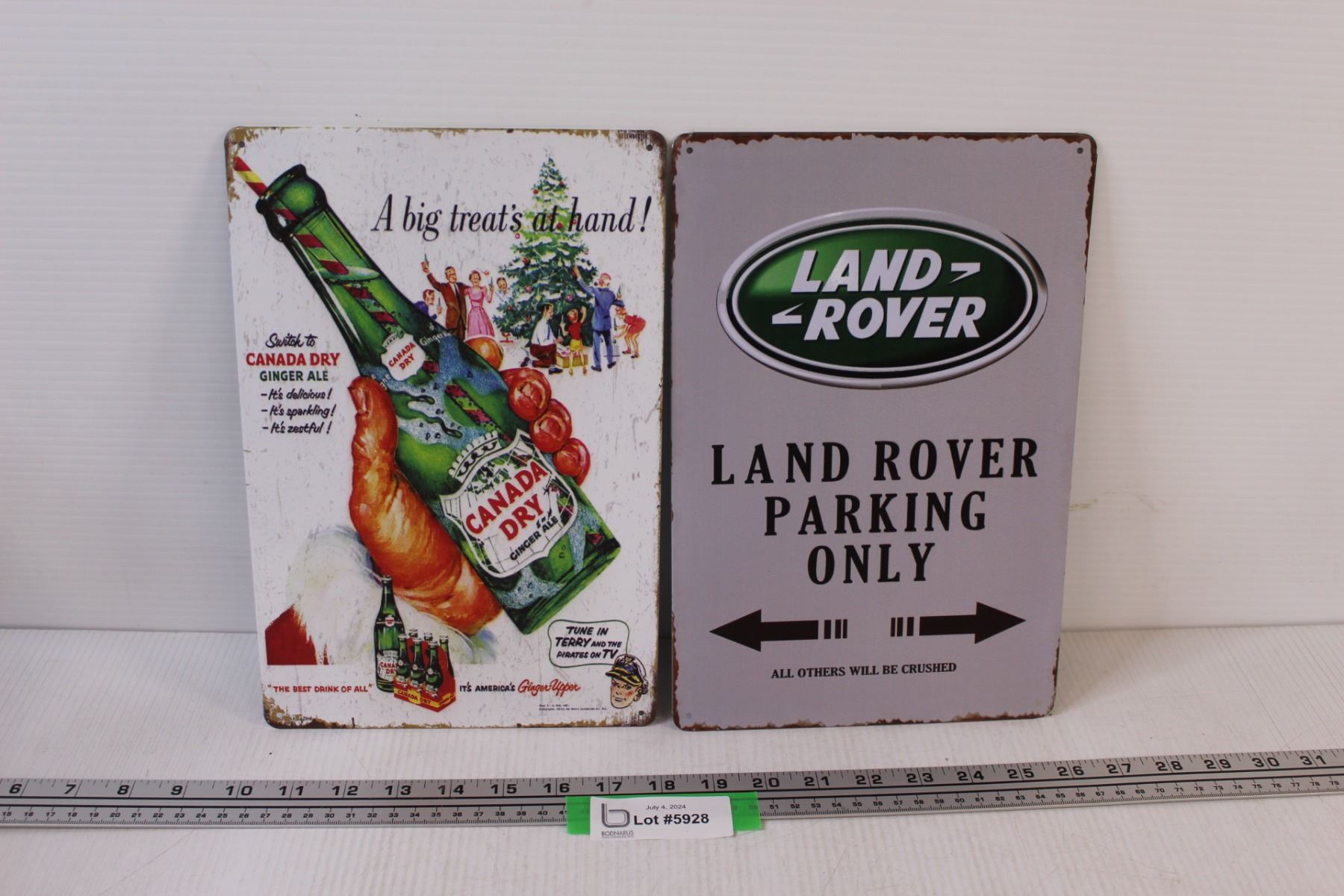 (2) Metal Signs (12"x8"): Land Rover & Canada Dry