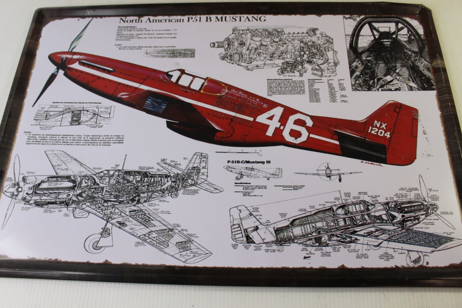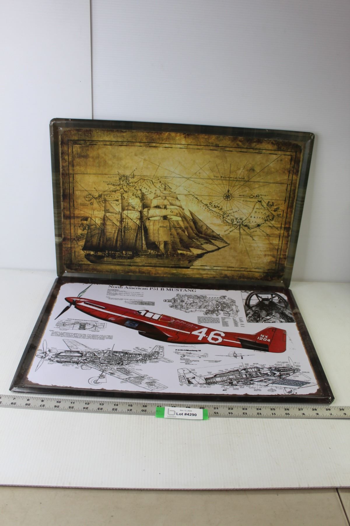 (2) Metal Wall Art (Sailboat, P51 Mustang) 2' x 15.5"
