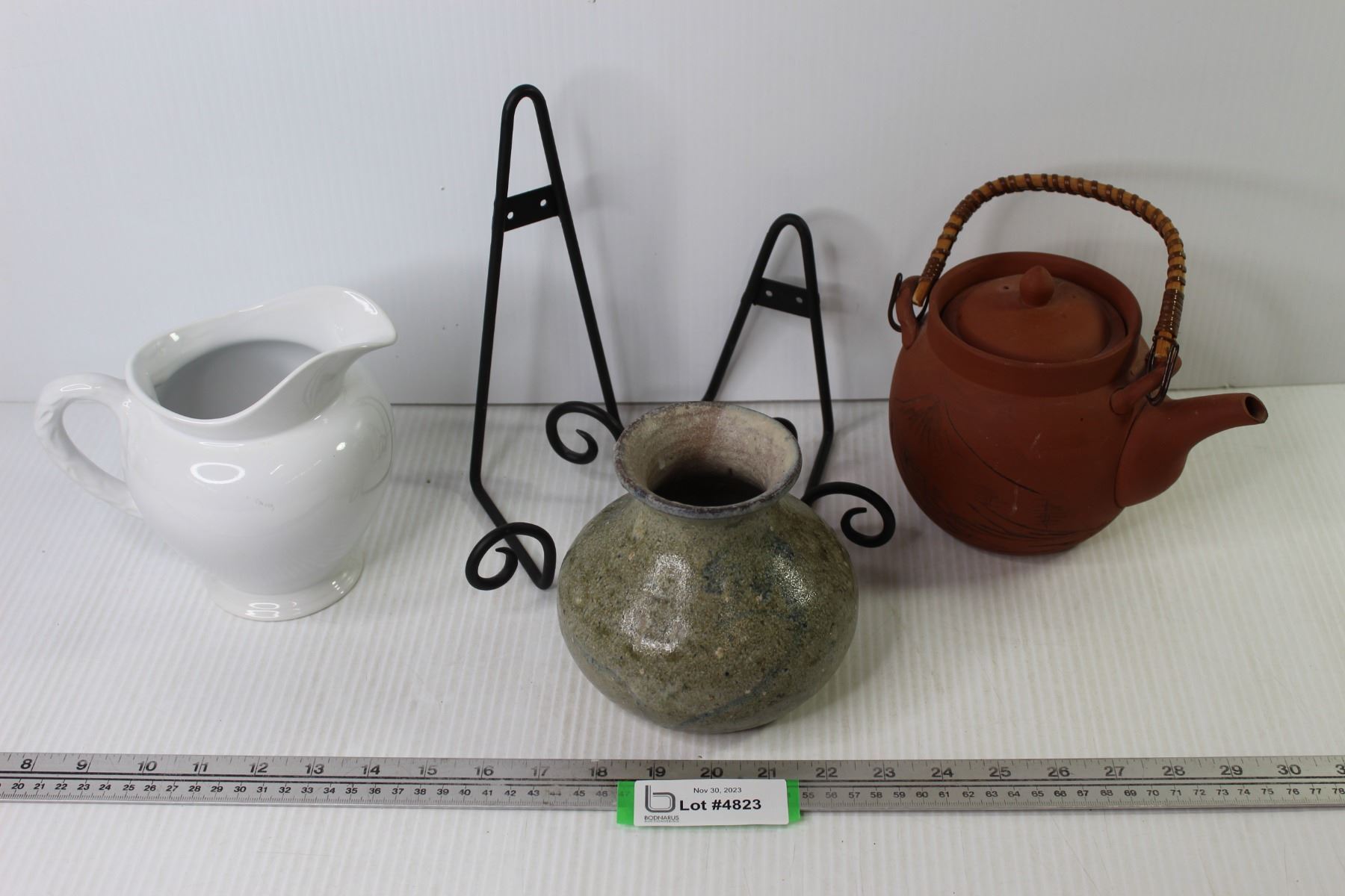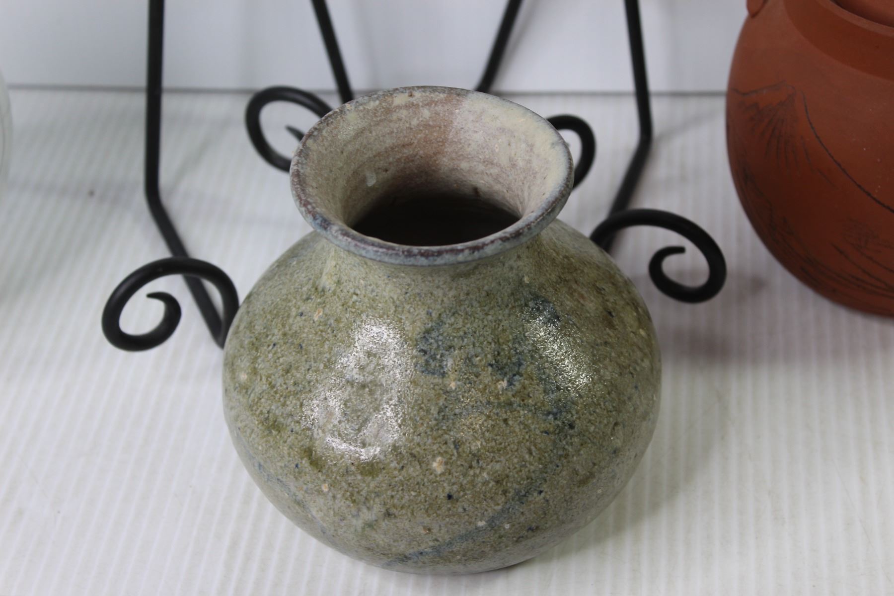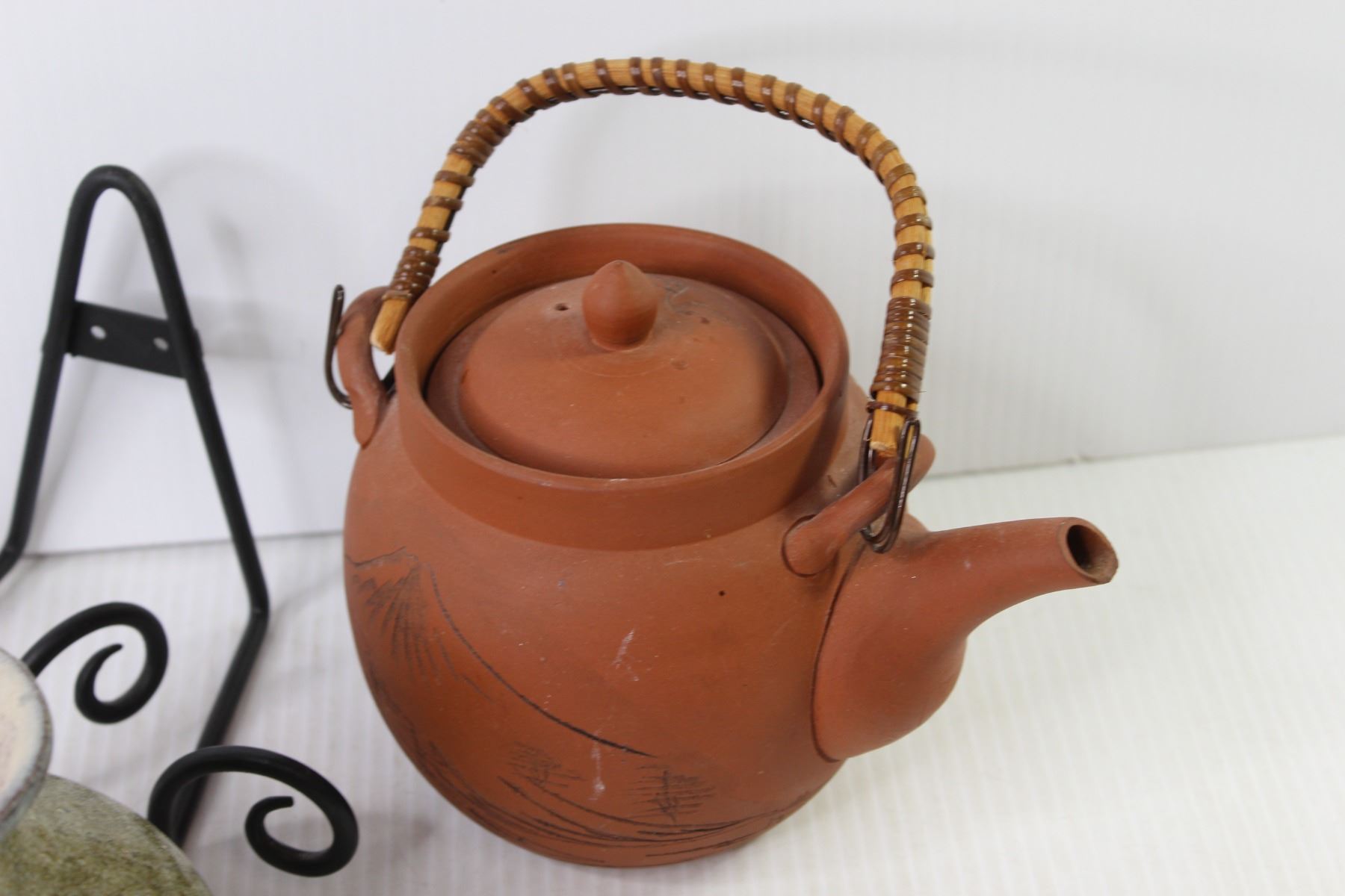 (2) Metal Wall Hangers - Clay Teapot - Ceramic Pitcher - Stoneware Vase
