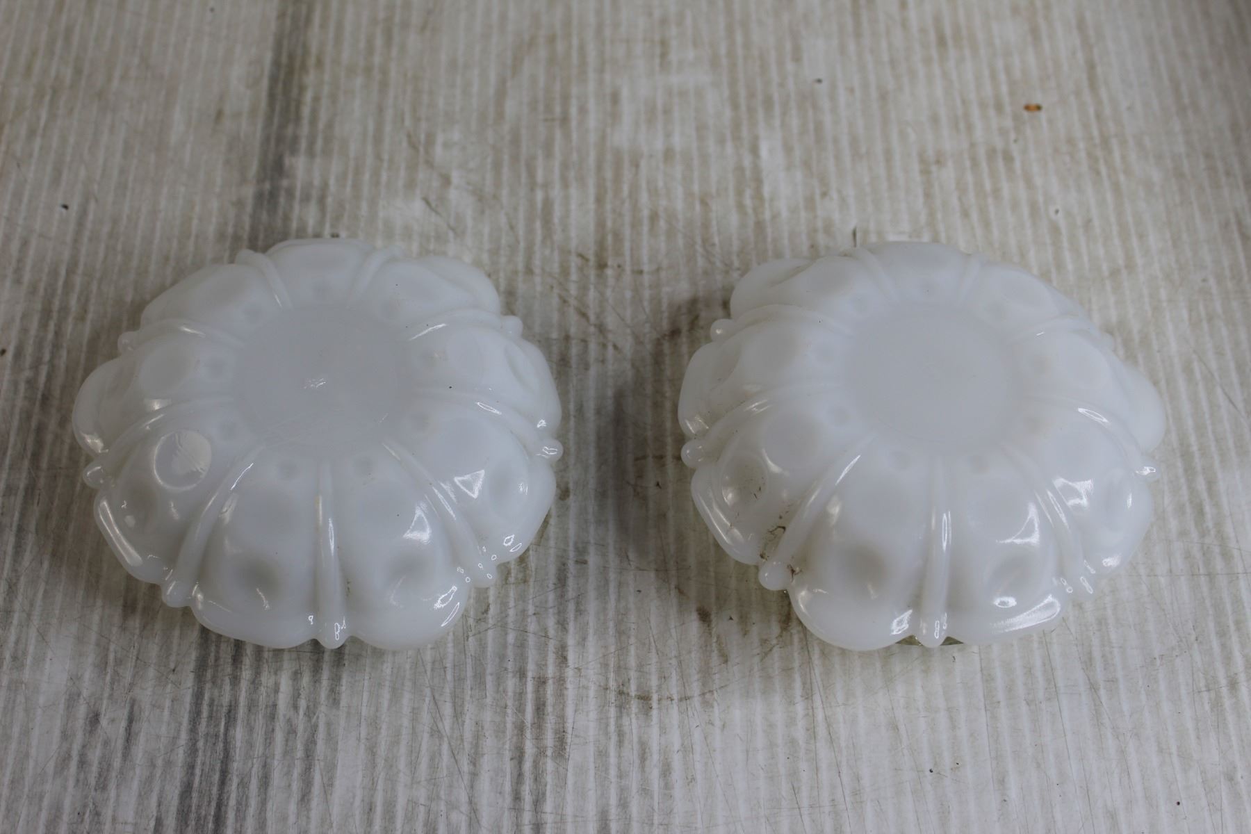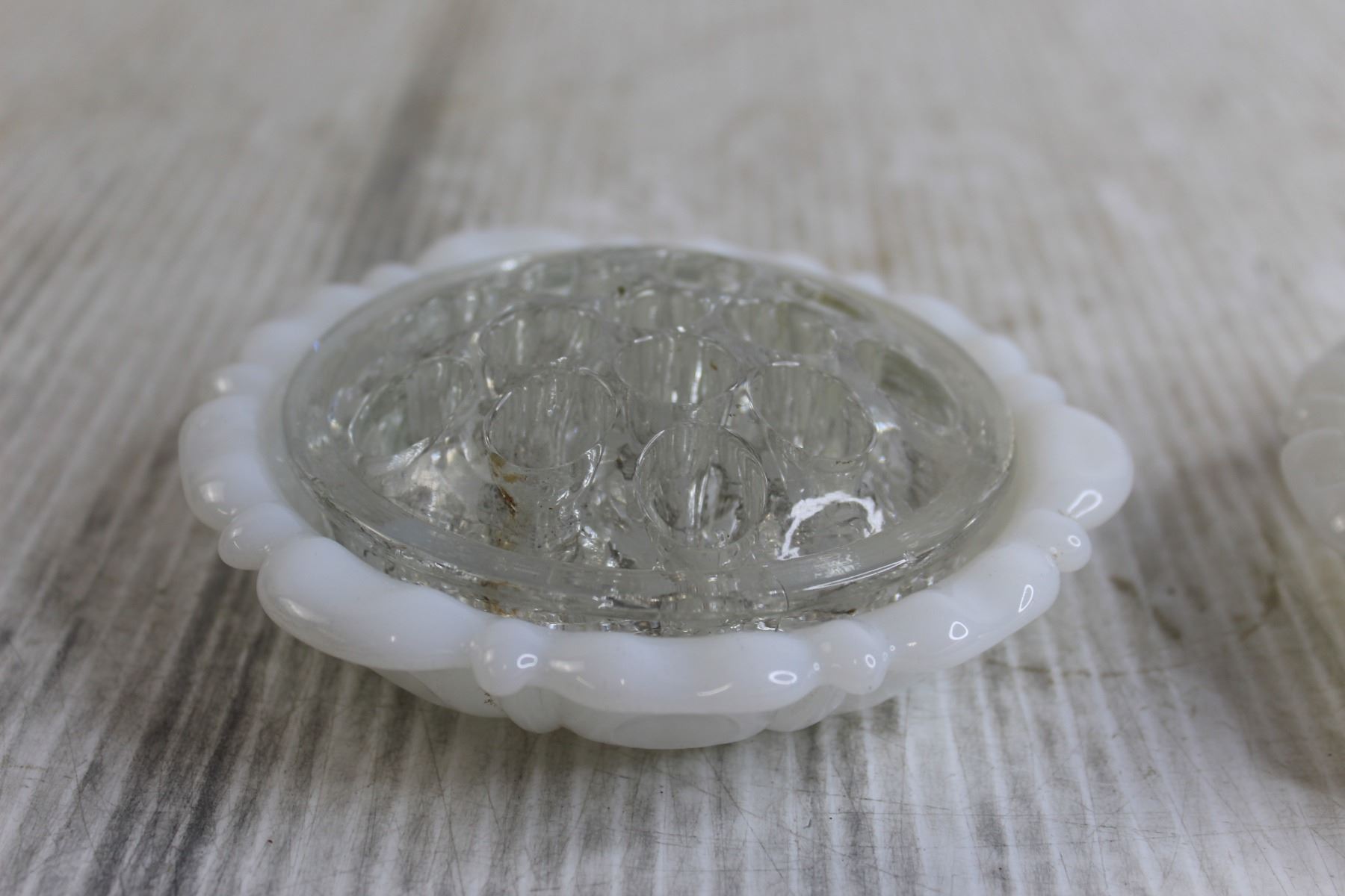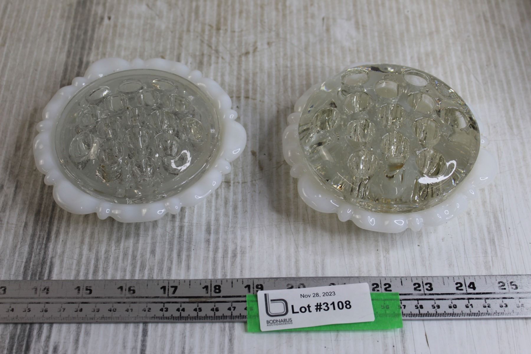 (2) Milk Glass Centrepiece Vases w/ Flower Frogs