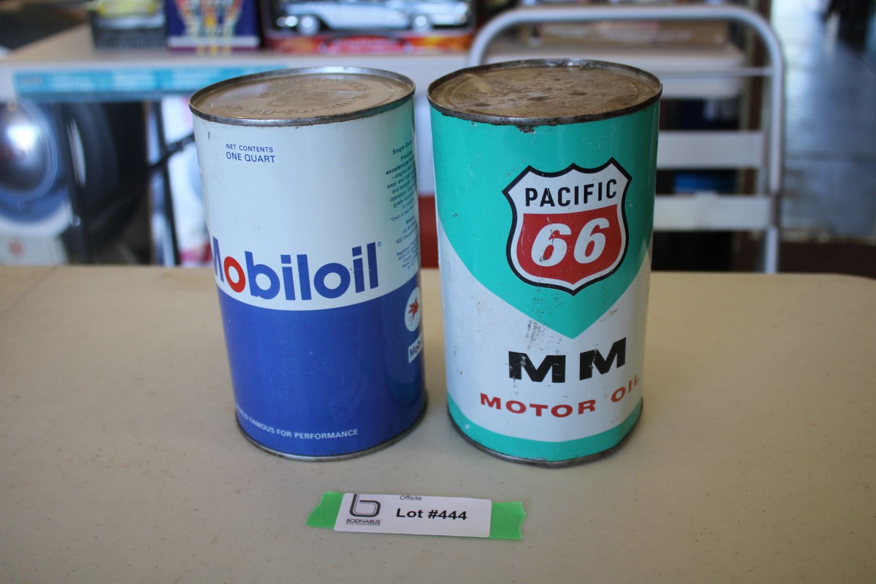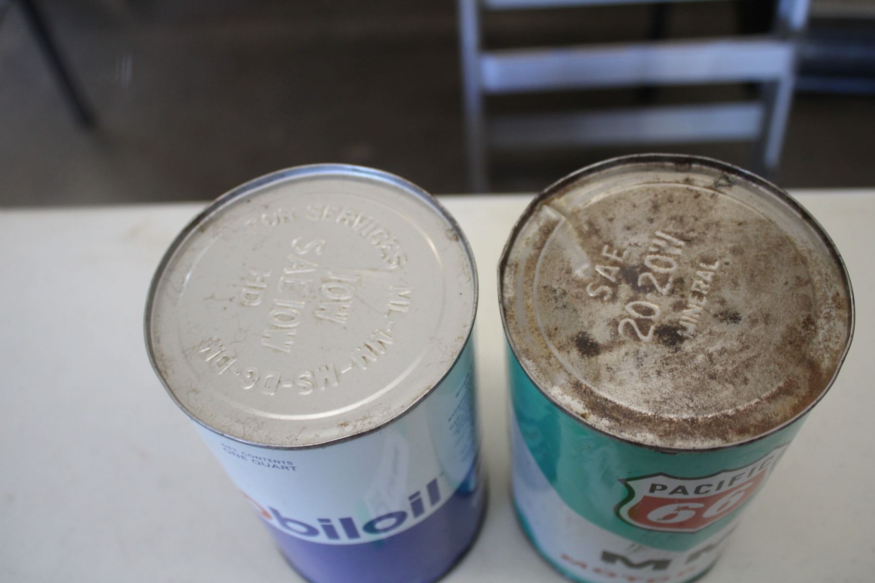 (2) Motor Oil Cans - Mobiloil + Pacific 66