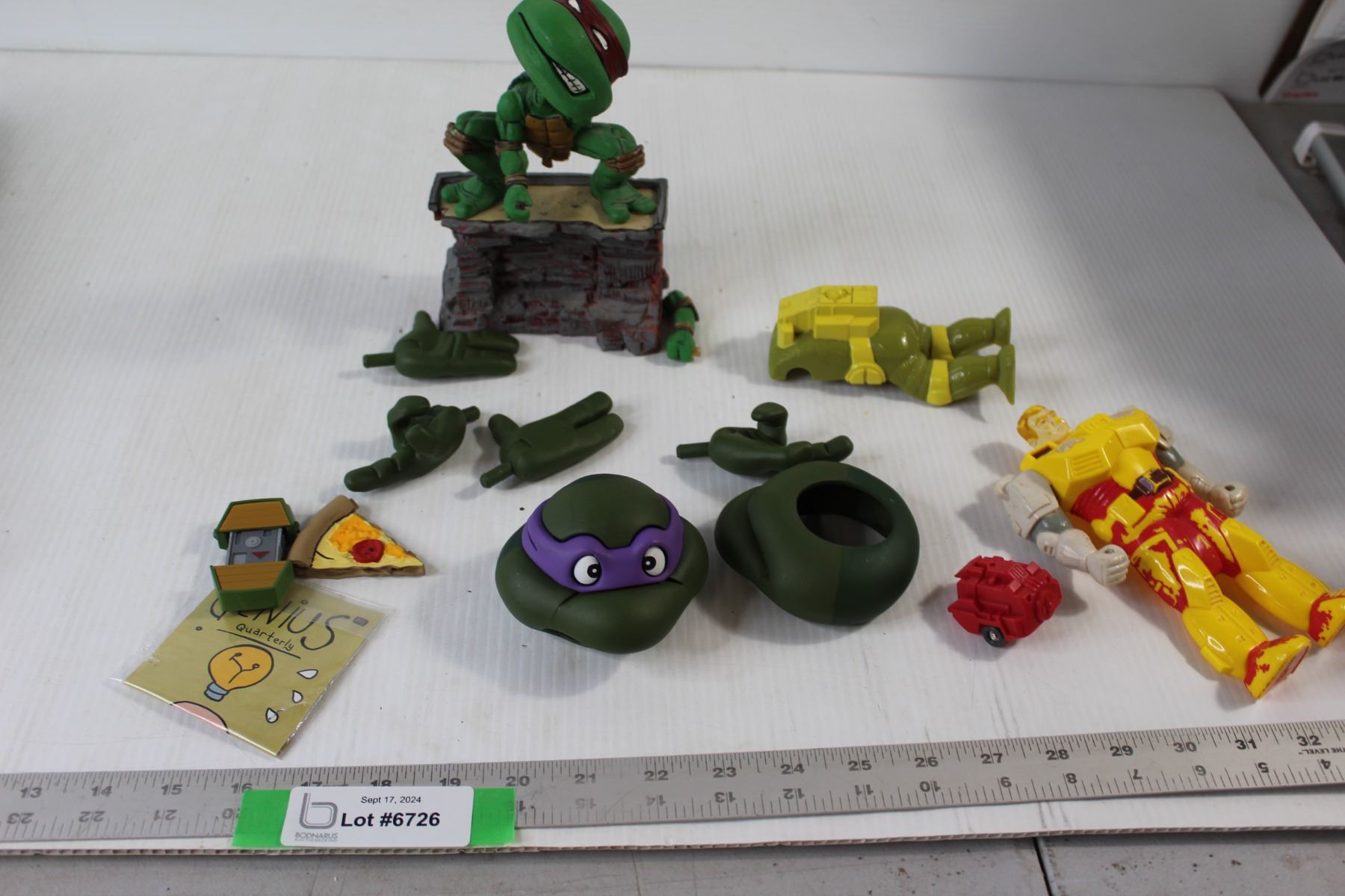 (2) Ninja Turtle Figurines, Transformers Pretender Bumblebee Toy,