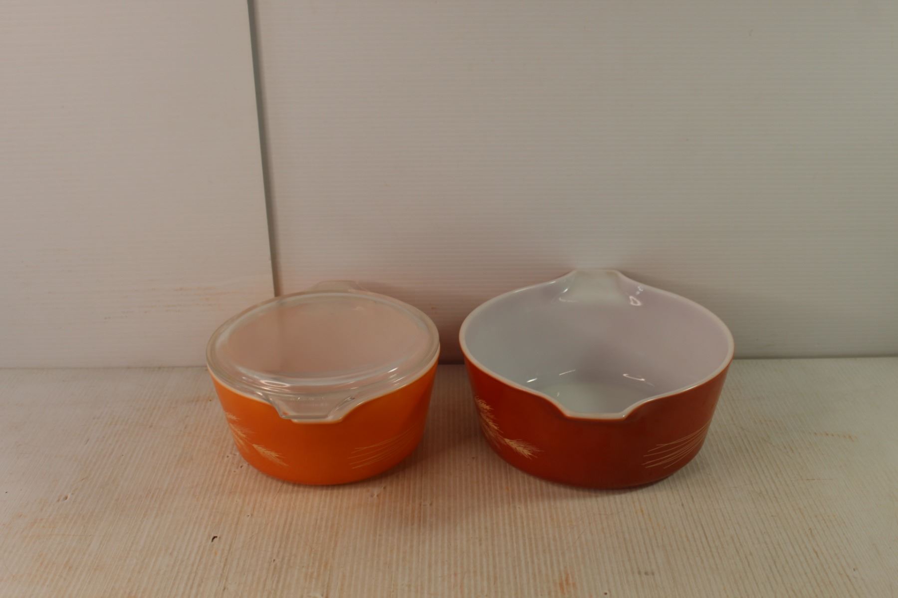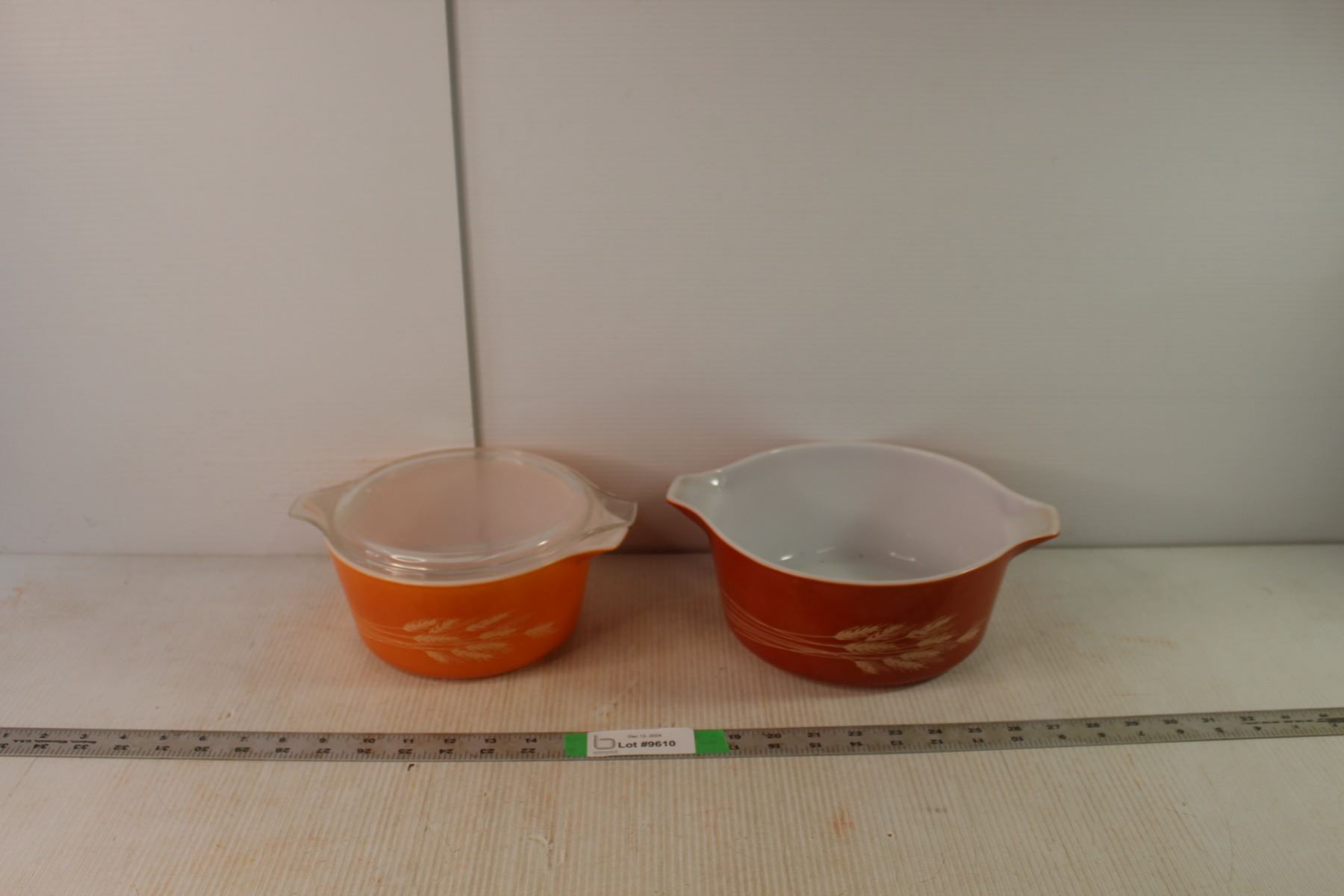 (2) "Old Harvest" Pyrex Casserole Dishes - one lid