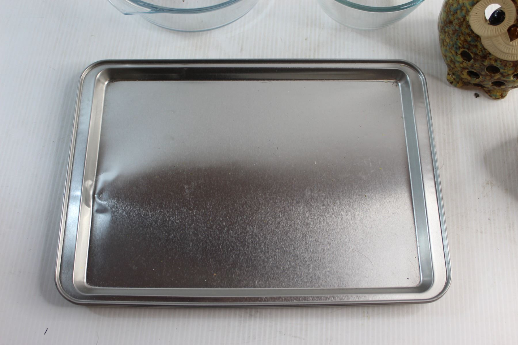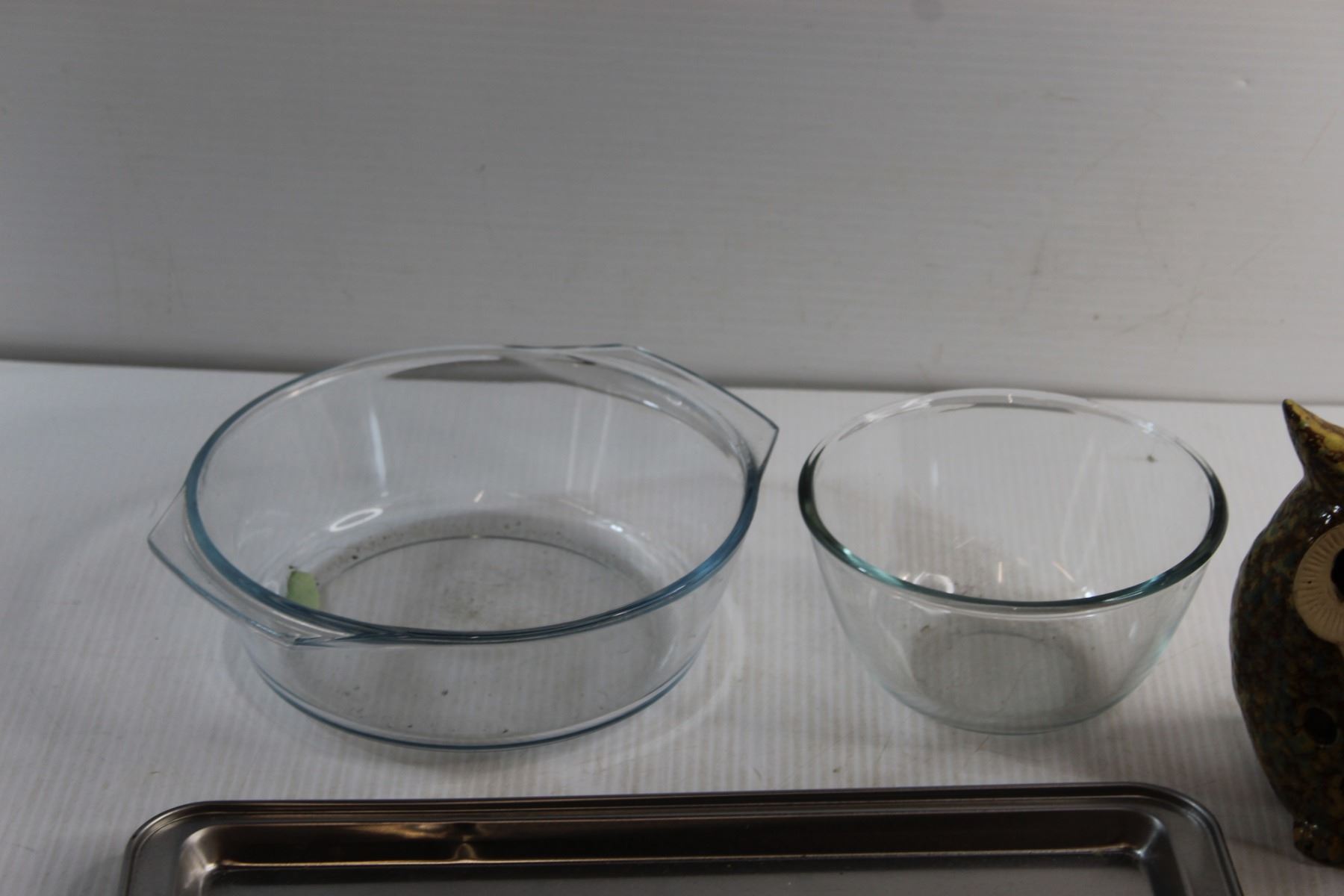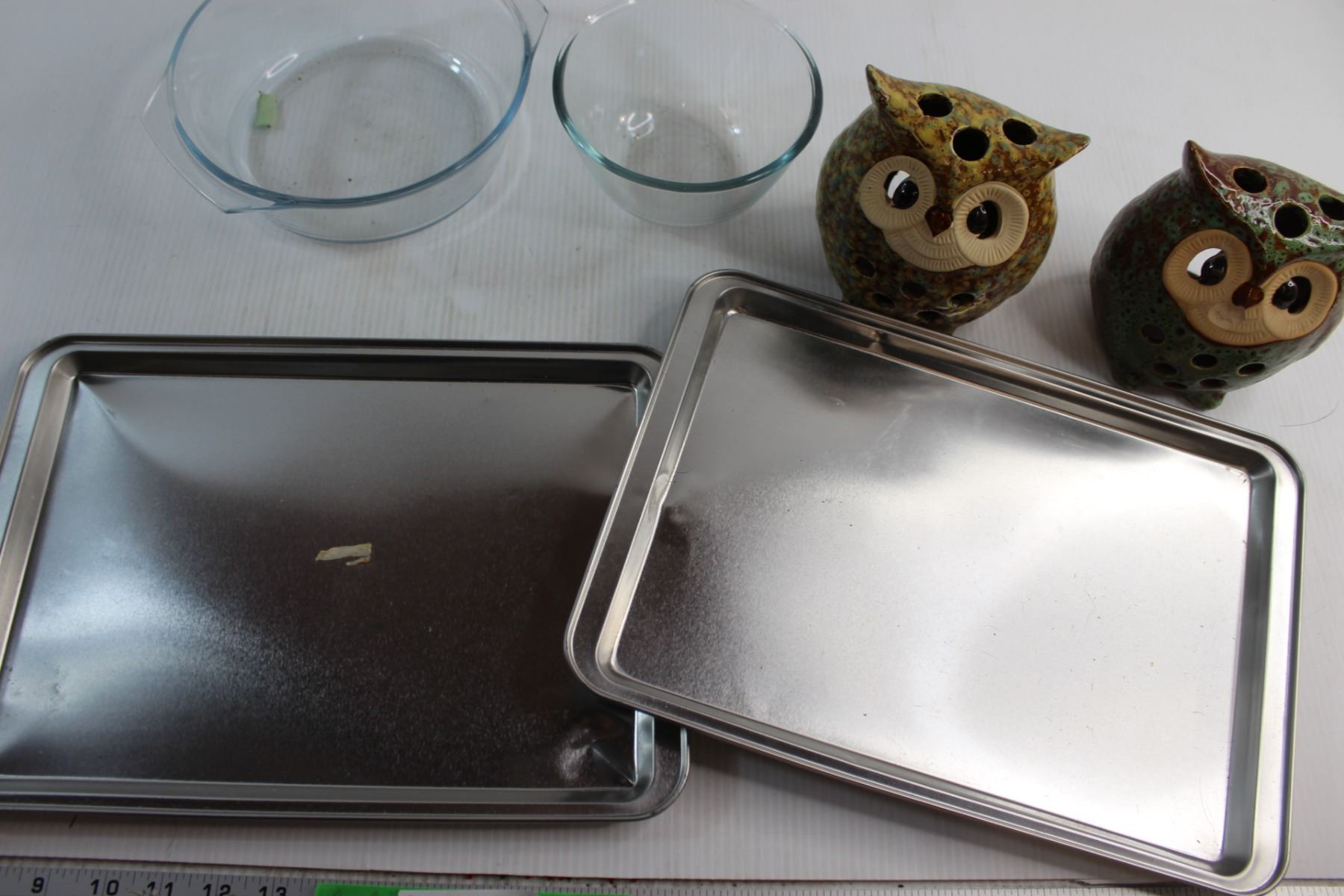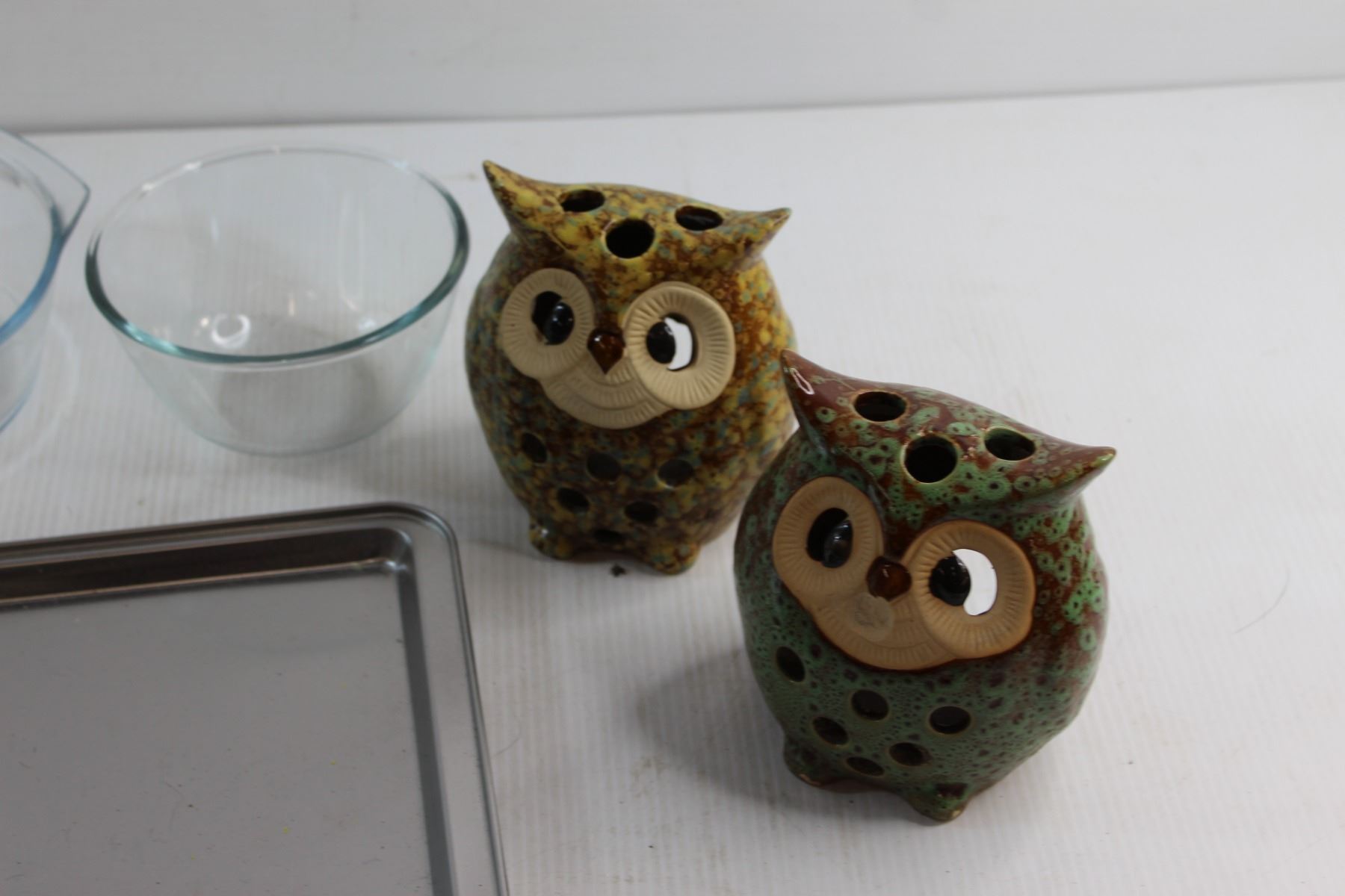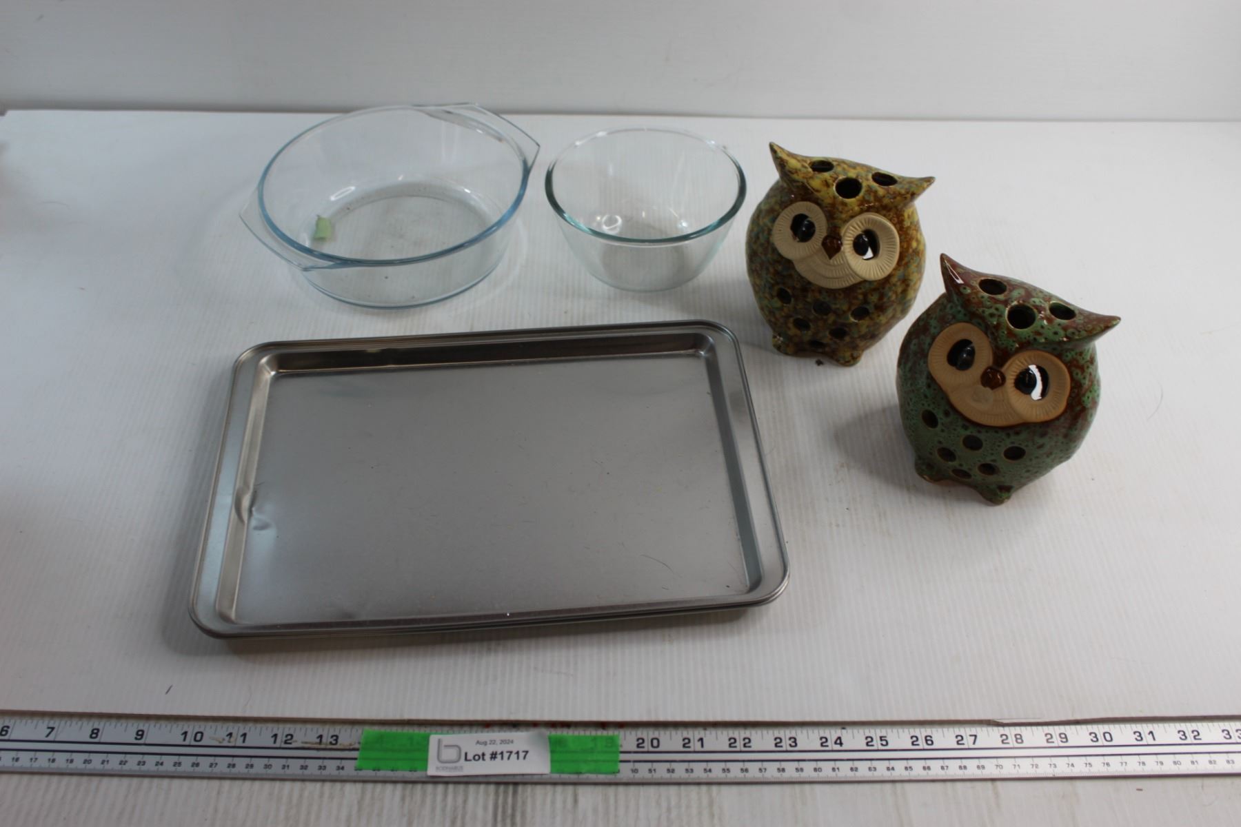 (2) Owl Candle Lights, (2) Trays, Casserole Dish and Bowl