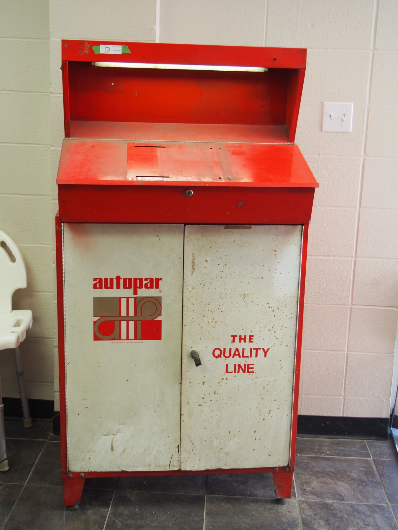 2 PIECE AUTO PAR DISPLAY CABINET (32X41 1/2 IN TALL X 13.5 IN DEEP) WITH LIGHT (WORKING) TOP PART (30 1/2 W X 21 TALLX 20 IN DEEP) TOP PIECE BOLTS ON TOP