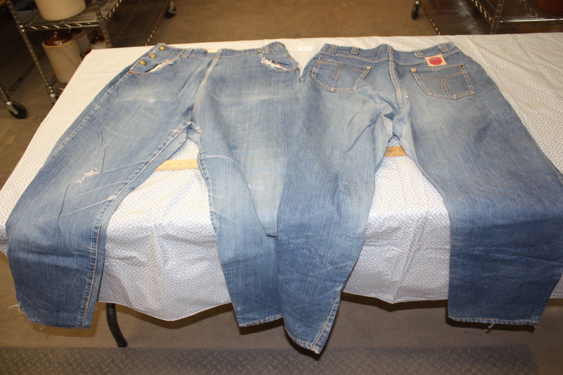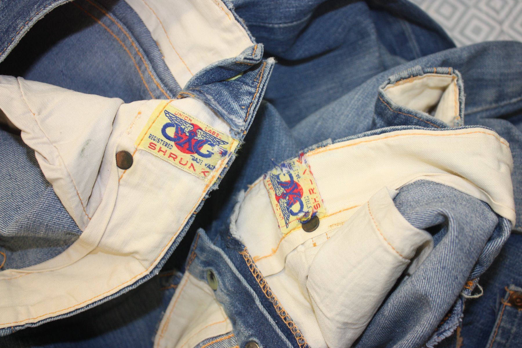 2 Pair 1940 GWG Jeans Original Labels and Buttons