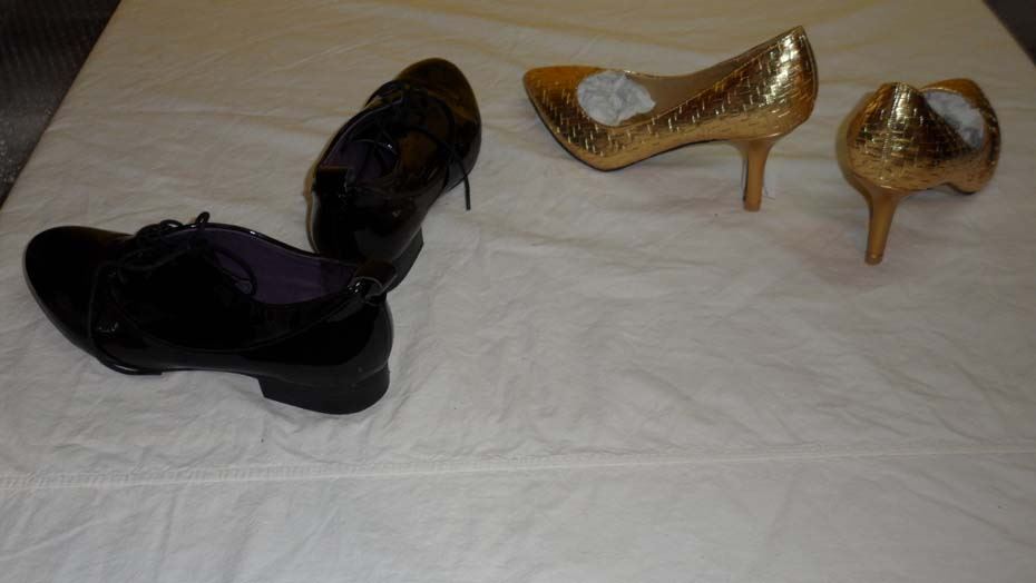 Patent Shoe - flat - Black - Size 37 / Pump - 2" heel - Gold - Size 37