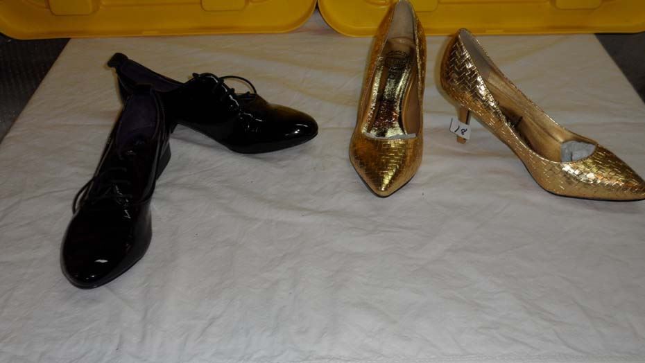 Patent Shoe - flat - Black - Size 37 / Pump - 2" heel - Gold - Size 37