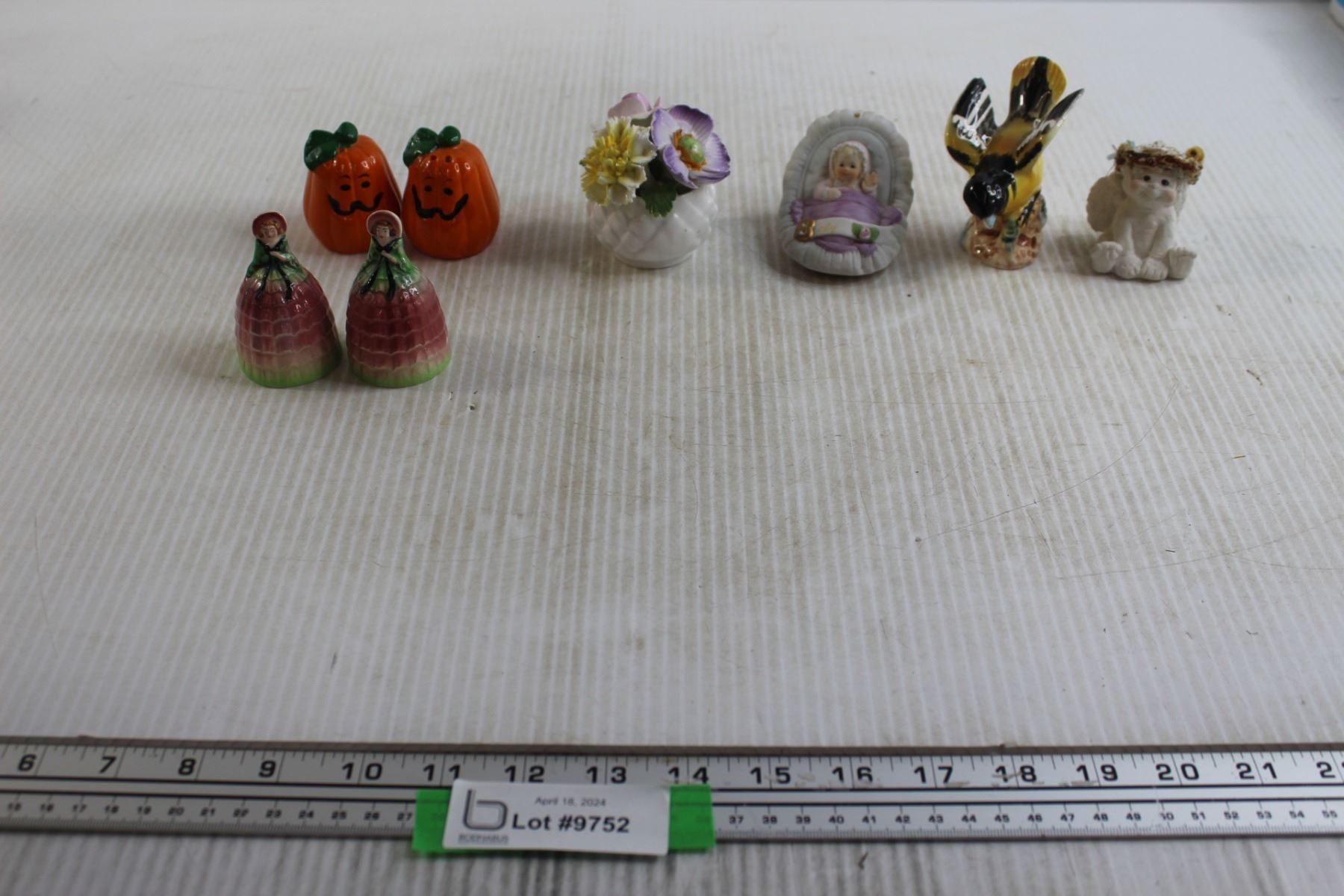 (2) Pairs Salt and Pepper Shakers, (4) Decorations
