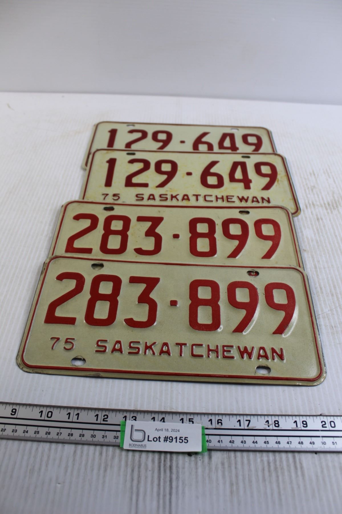 (2) Pairs Saskatchewan 1975 License Plates