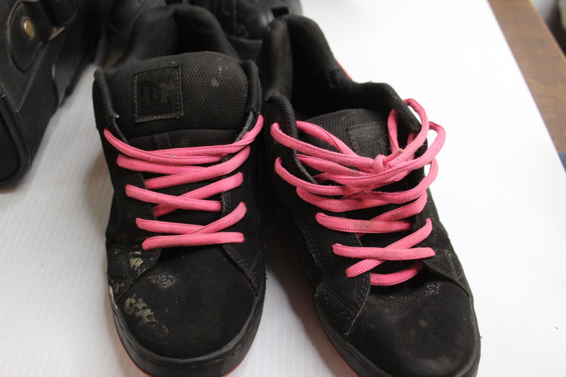 * (2) Pairs Shoes - Boots Size 10, DC Shoes Unknown; Suitcase - All Smell Like Smoke
