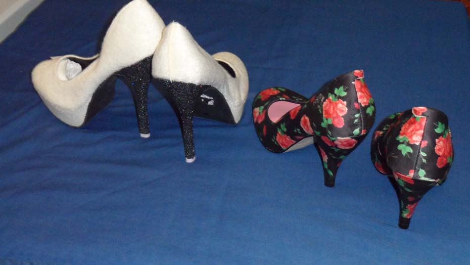 High Heel Shoe 5" heel - Ivory - Size 41 / High Heel 4" heel - Black flower - Size 41