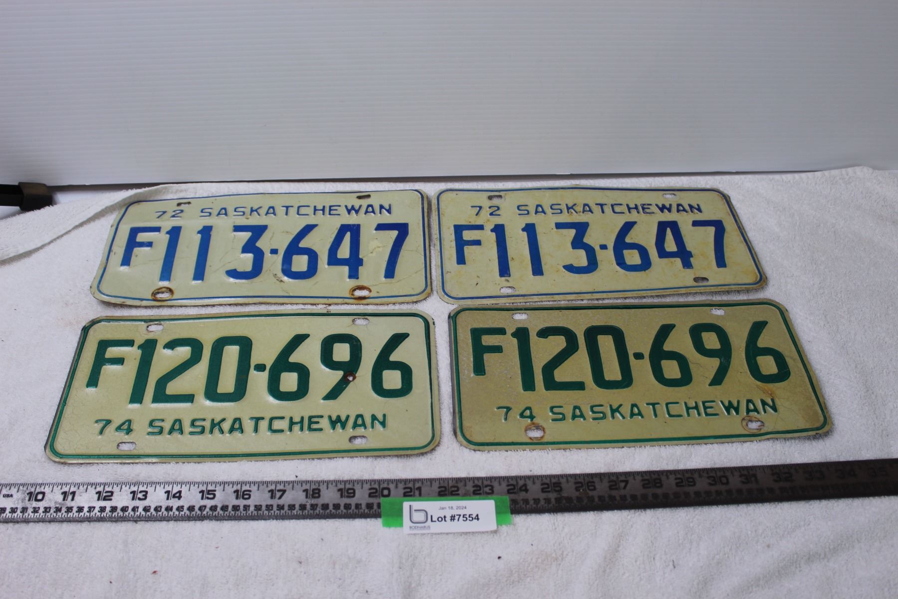 (2) Pairs of Antique Saskatchewan License Plates - (2) 1972, (2) 1974