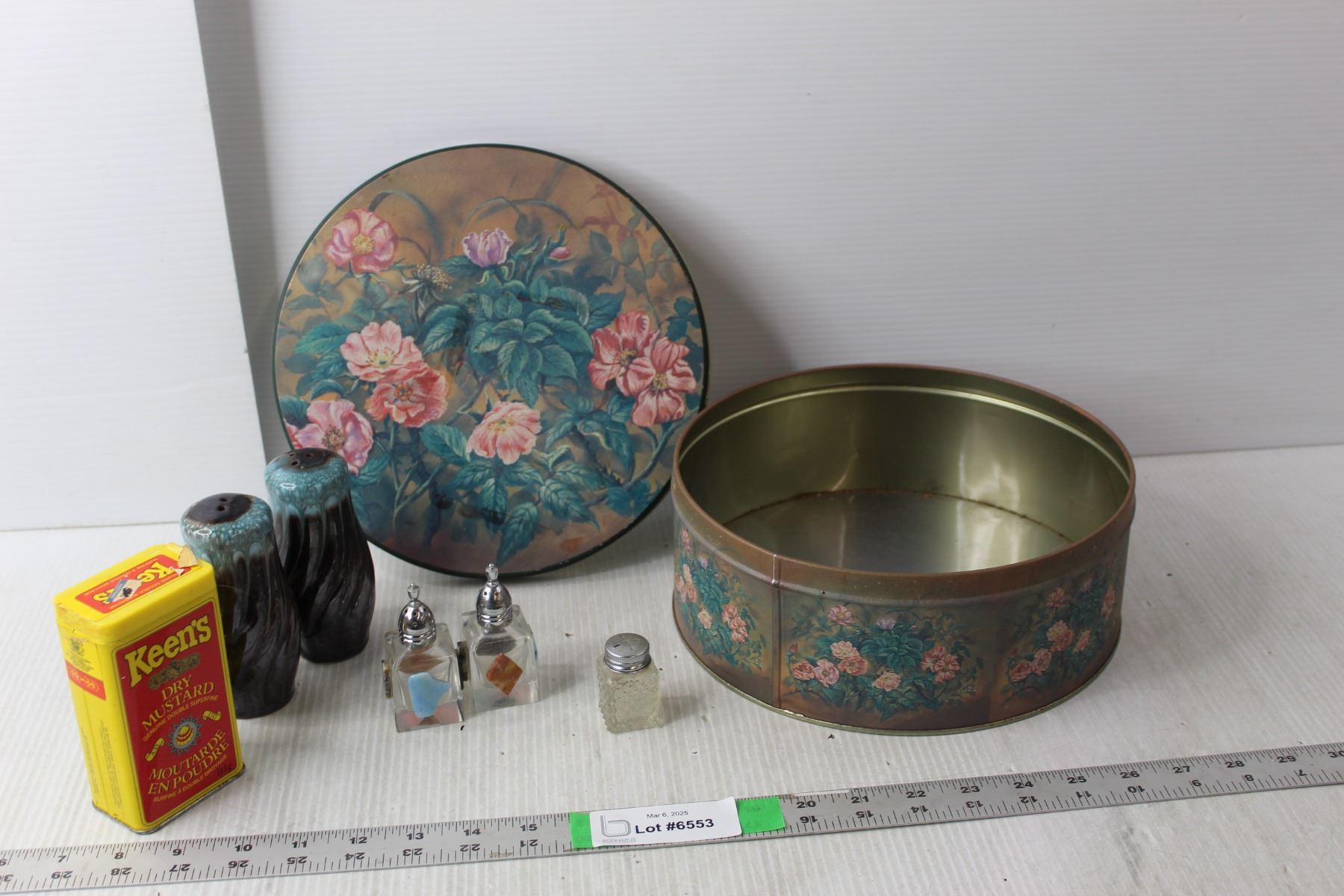 (2) Pairs of Salt & Pepper Shakers, Vintage Rose Tin, Misc.