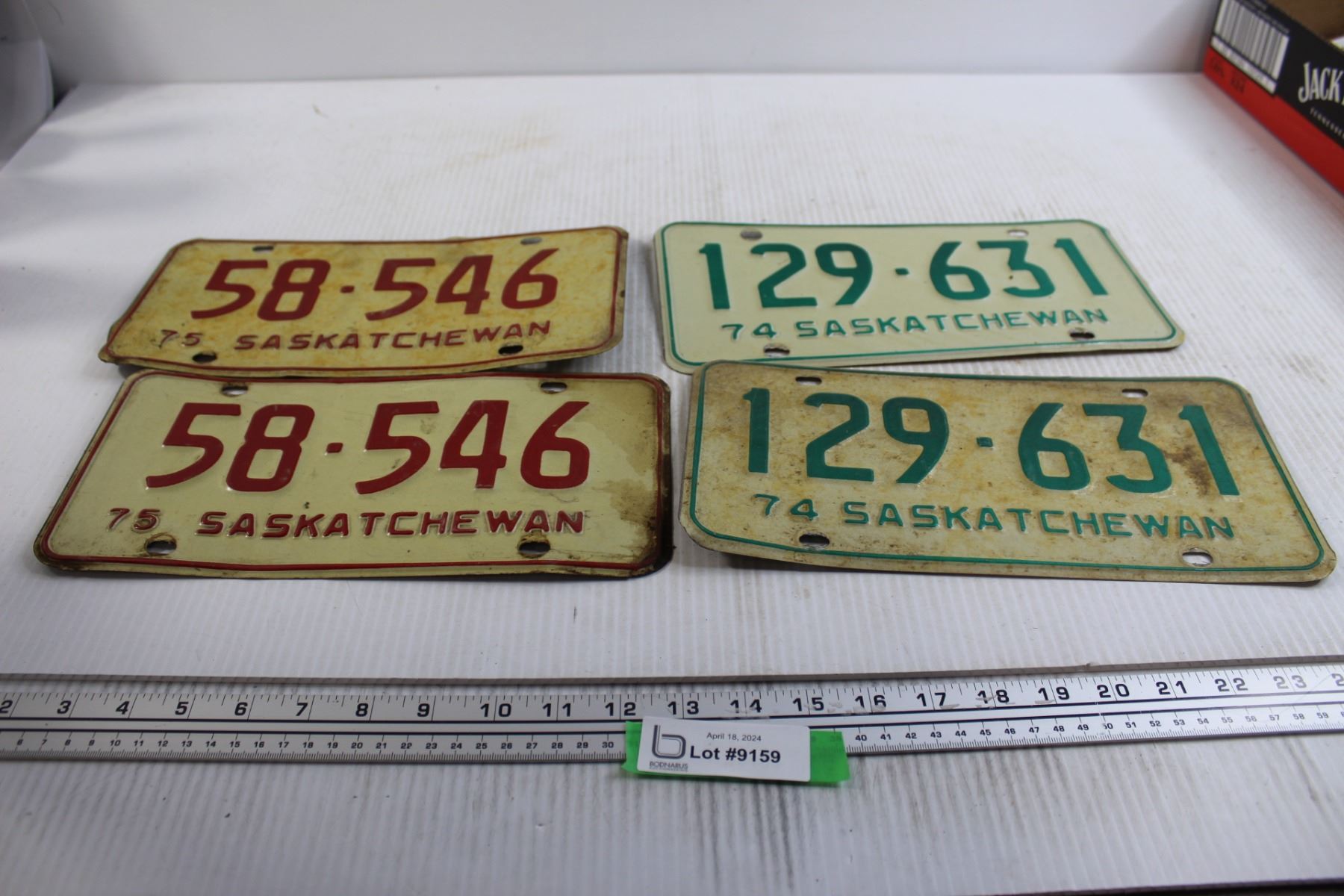 (2) Pairs of Saskatchewan License Plates - 1974, 1975