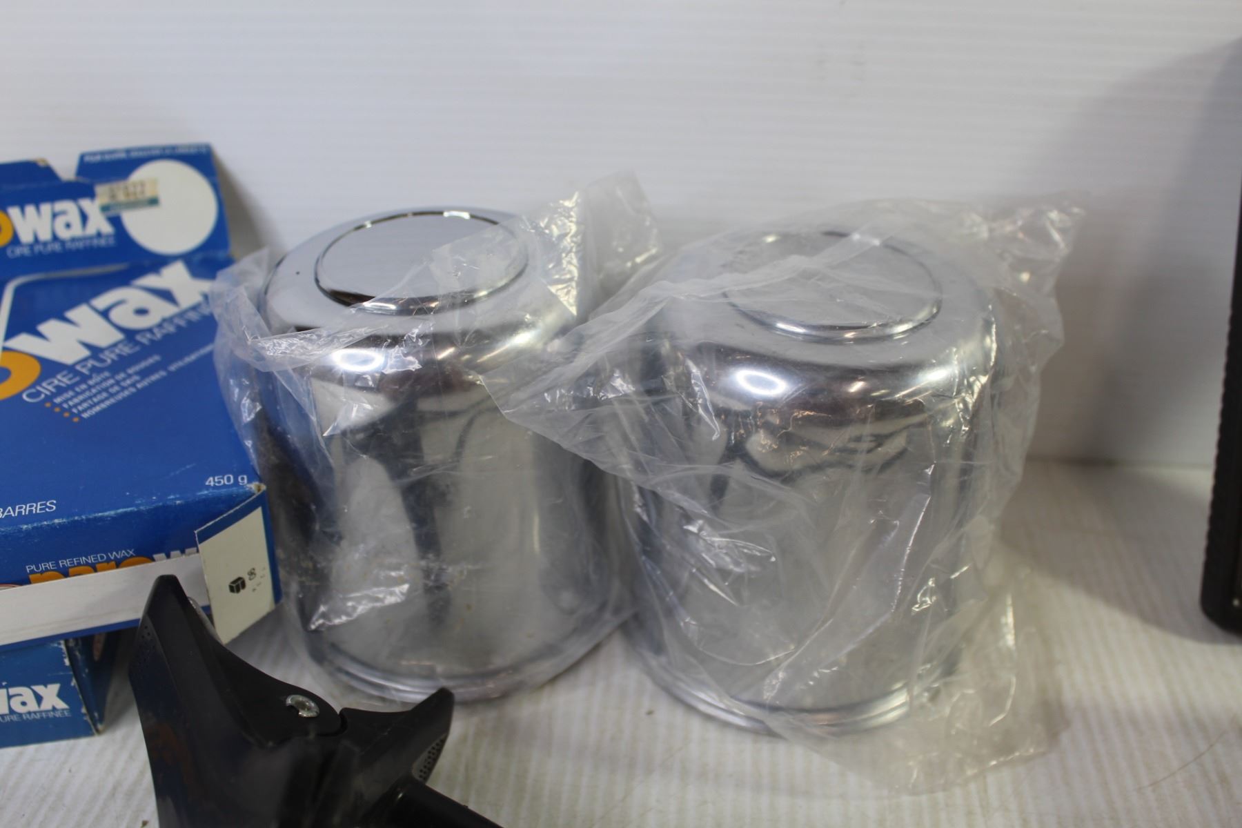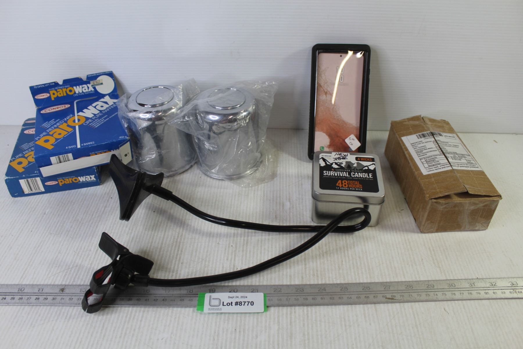 (2) Paro Wax Toilet Flange Seals - (2) Center Caps - Cell Phone Case - Clip-on Clip Holder - Survival Candle