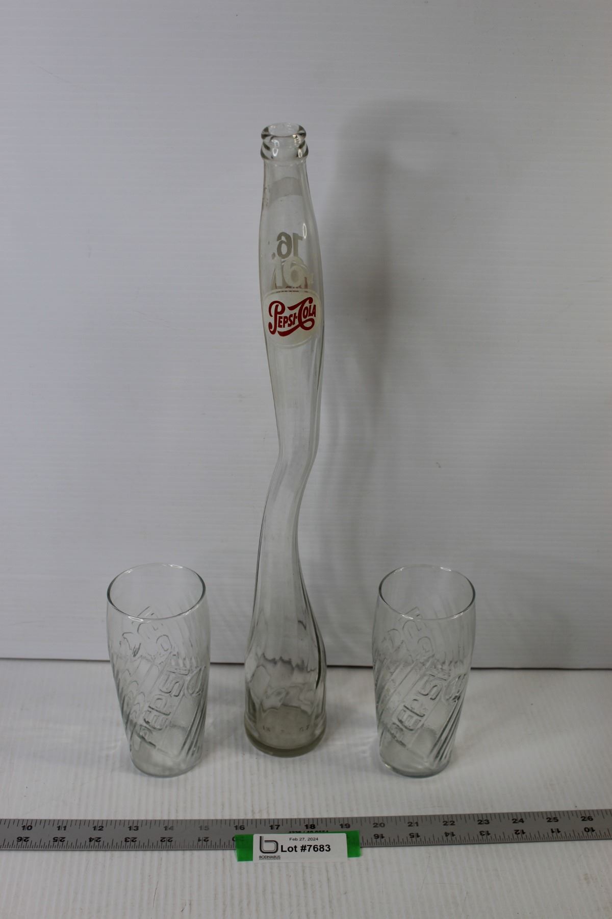 (2) Pepsi Glasses, Tall Twisted Pepsi Bottle