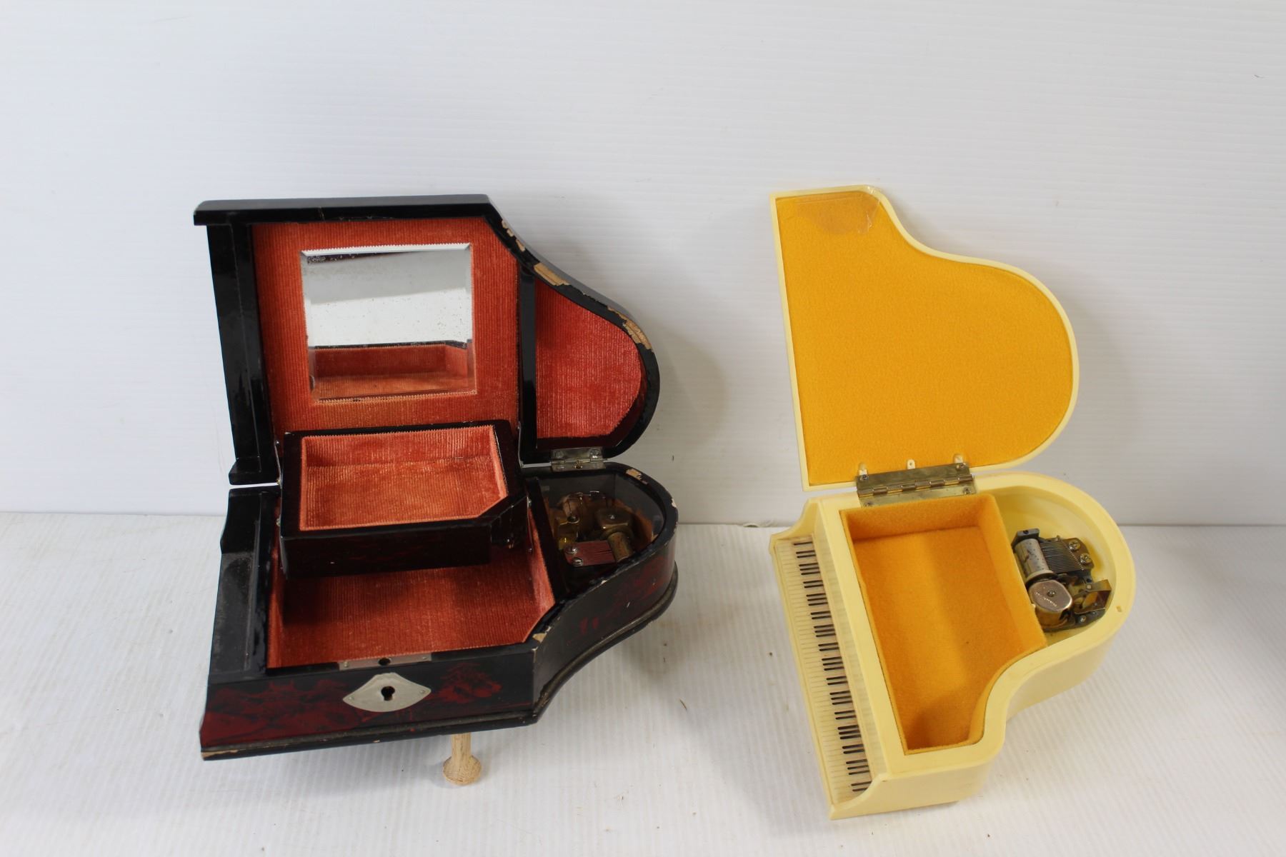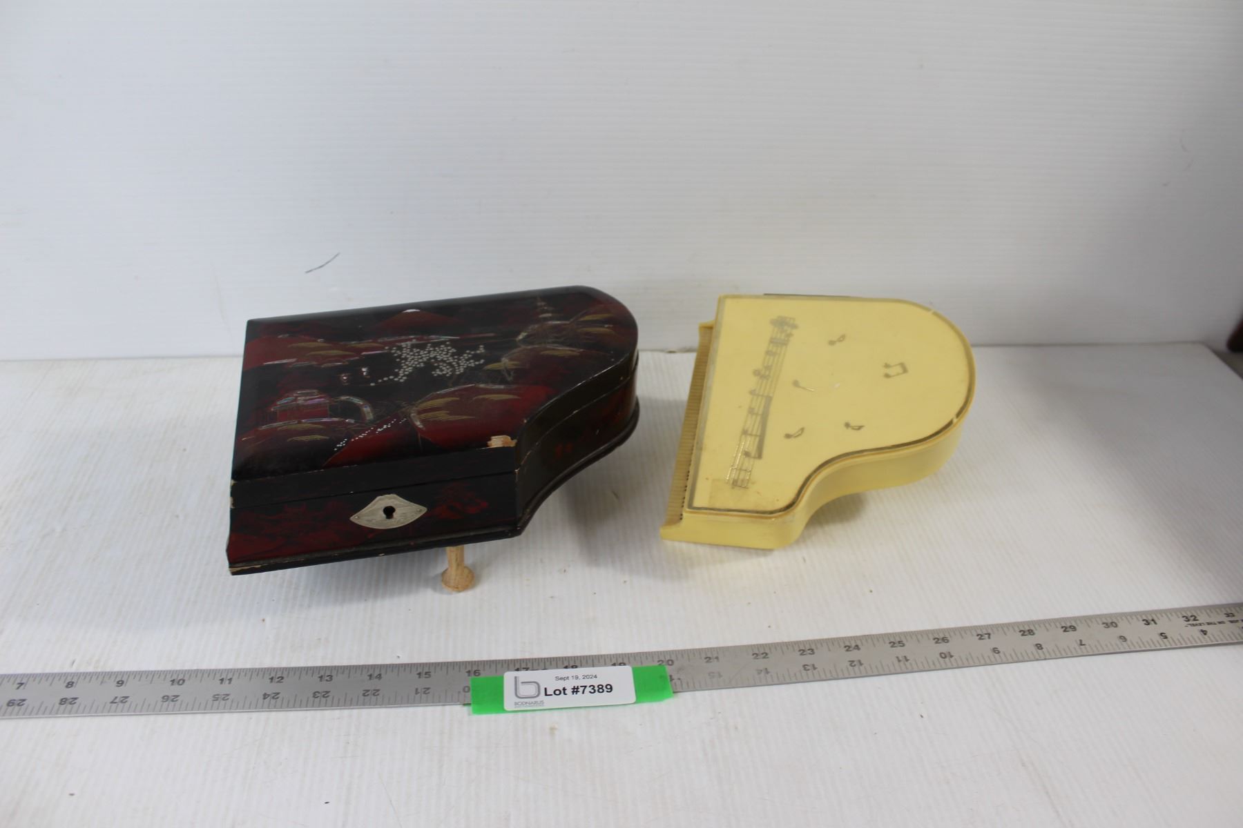 (2) Piano Music Jewelry Boxes - (1) Missing Leg - (1) Has Repairs