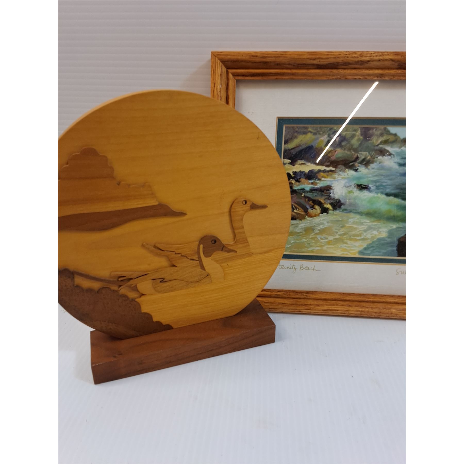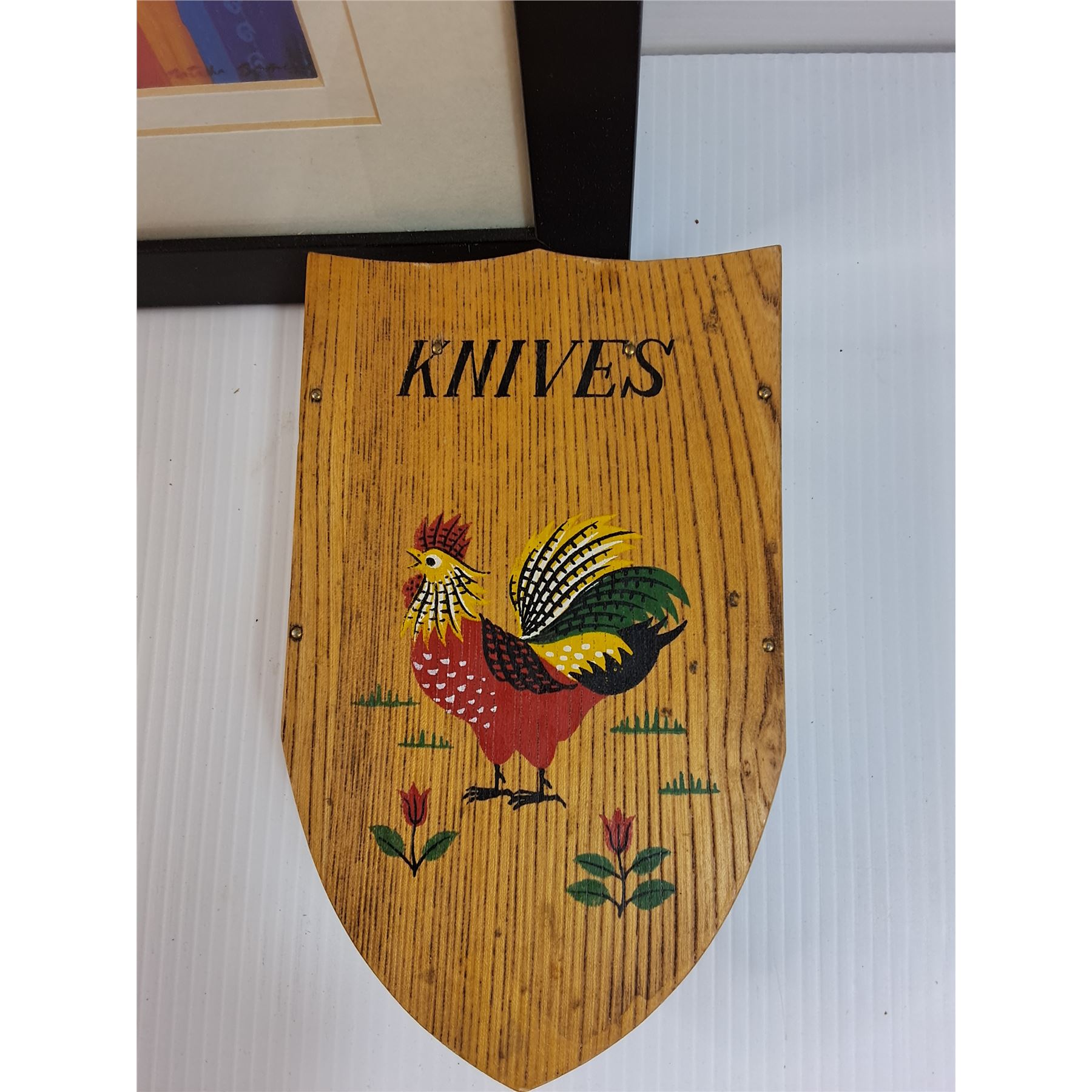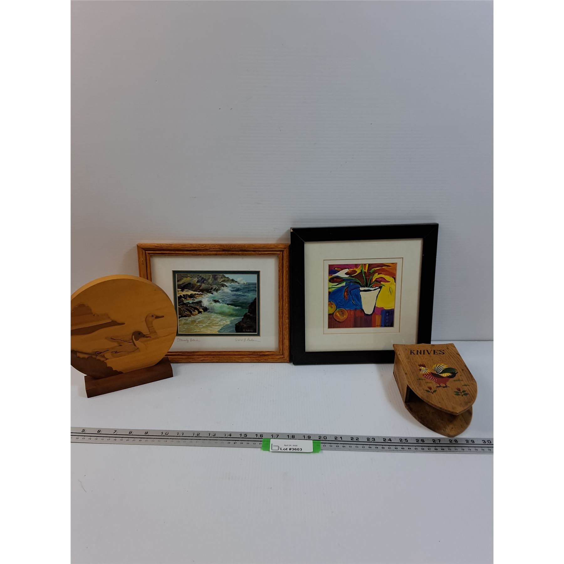 (2) Pictures, Wood Duck Inlay Decor, Rooster Knife Holder