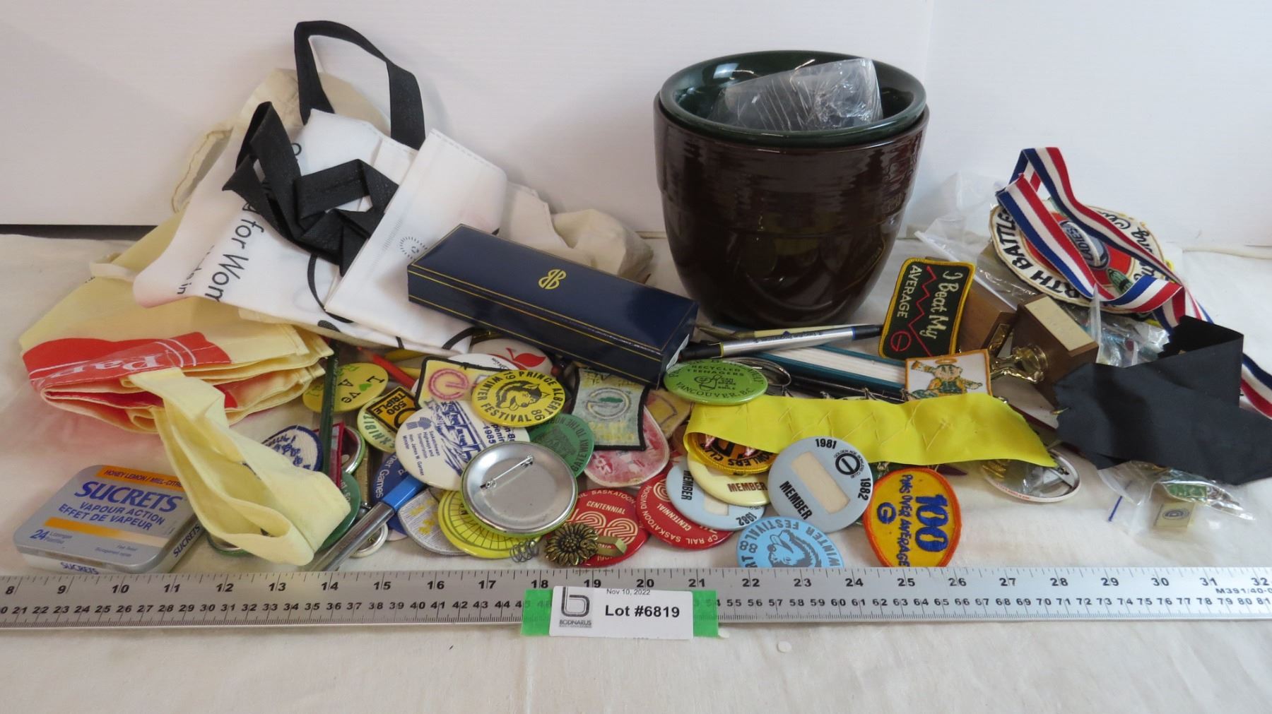 (2) Plant Pots -Button Pins - Pens & Pencils - Trophies - Pins
