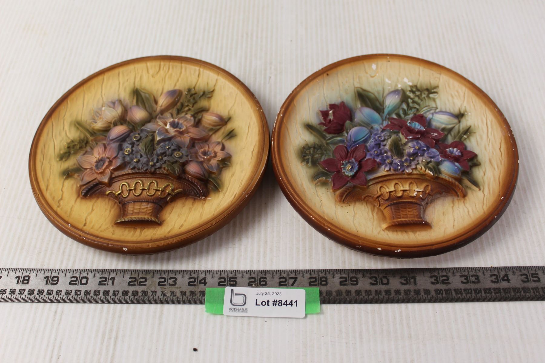 (2) Plasterware Flower Wall Art