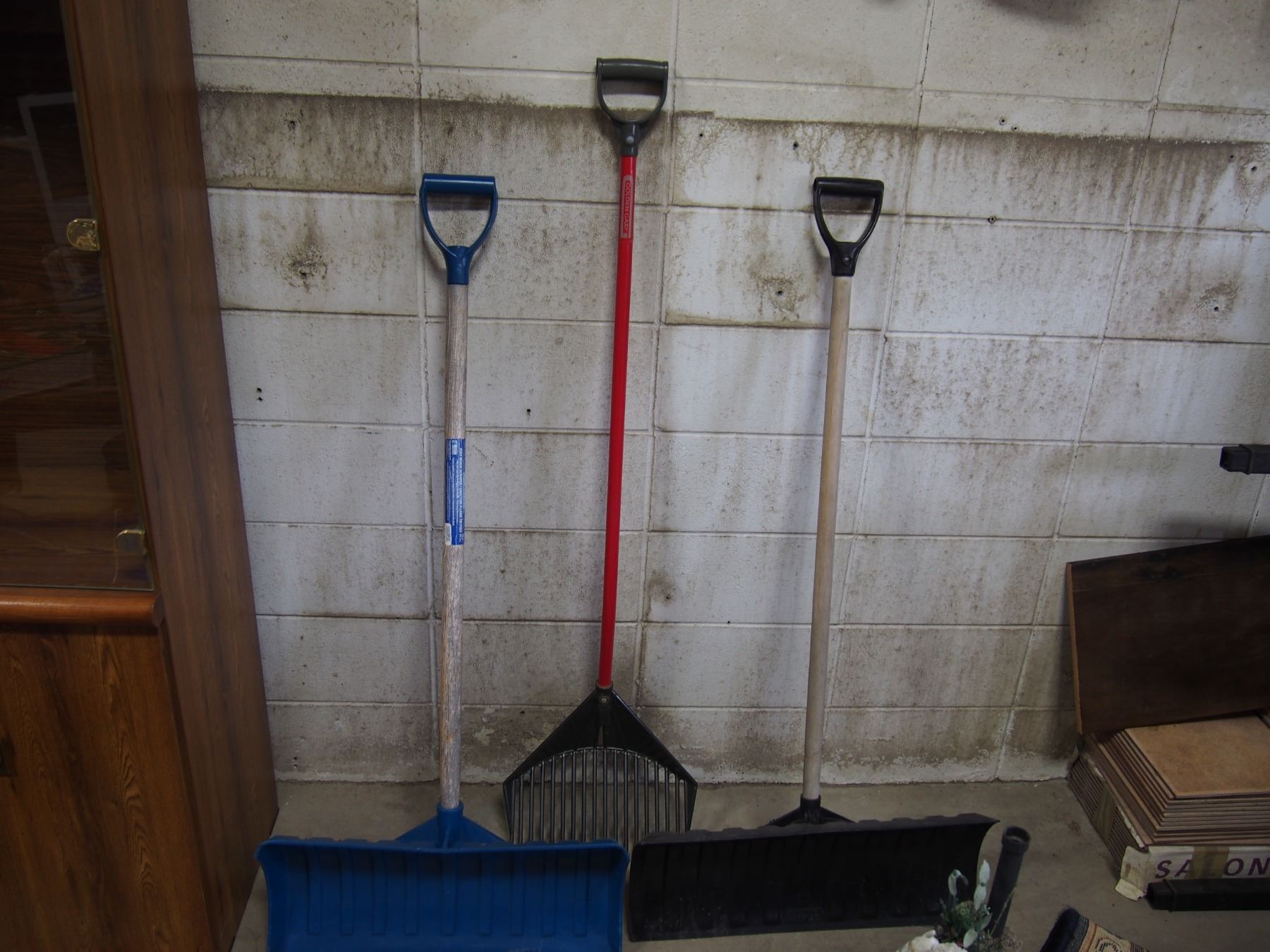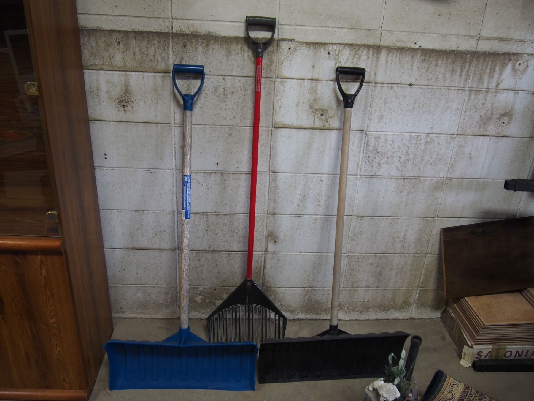 2 Plastic Snow Shovels & 1 Plastic Rake